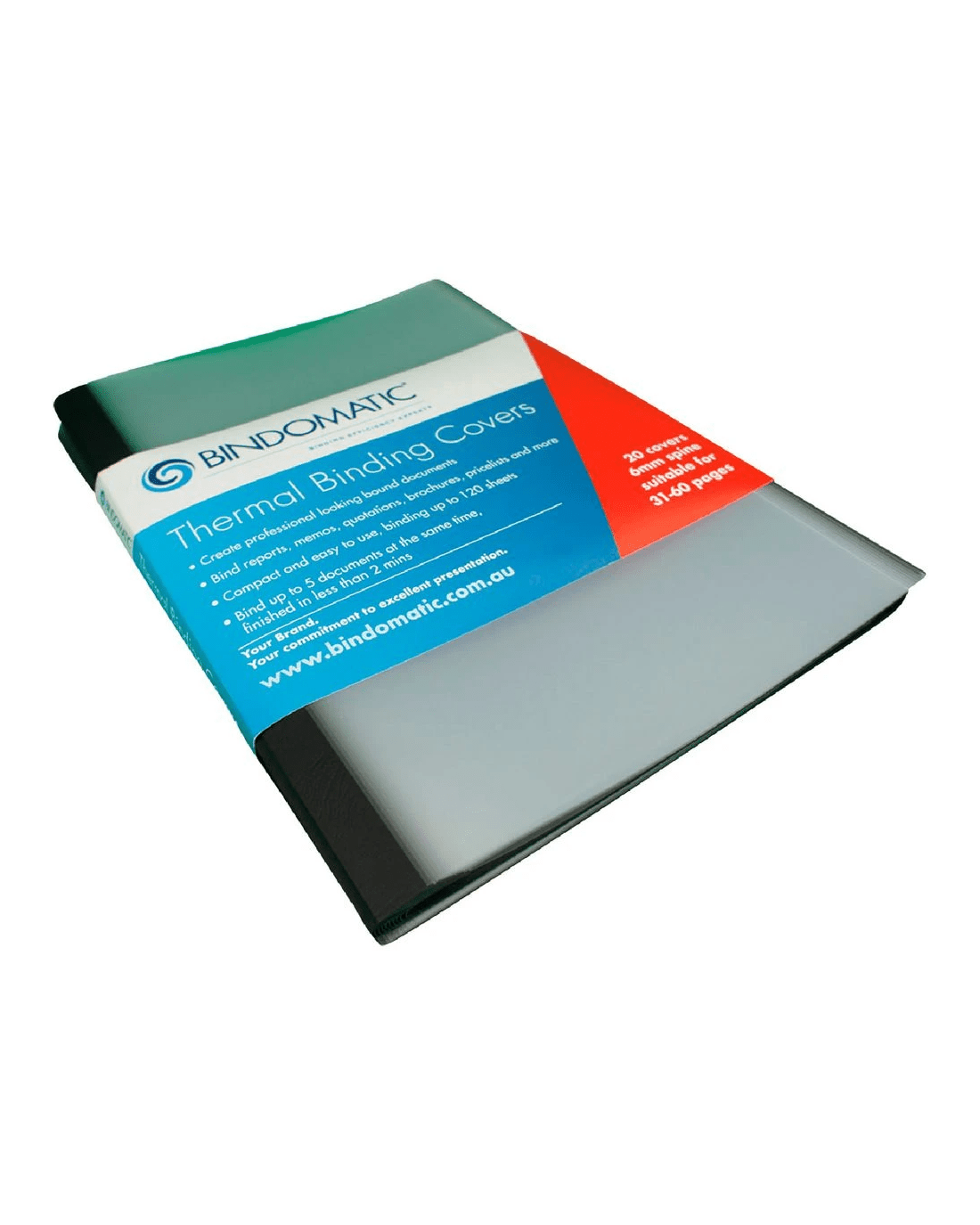 These Bindomatic A4 Binding Thermal Covers are a tough and flexible option for keeping protecting your bound documents. These binding covers are made from 6 mm thick plastic, which will not crease and is easy to wipe clean. They are a non-reflective material with a no glare finish and have a transparent pocket at the front for you to slip in your document title.