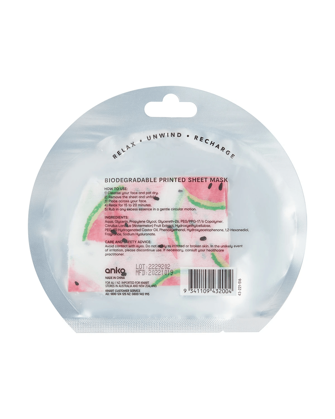 Sold by KmartPrinted Sheet Mask 20ml - Watermelon Extract