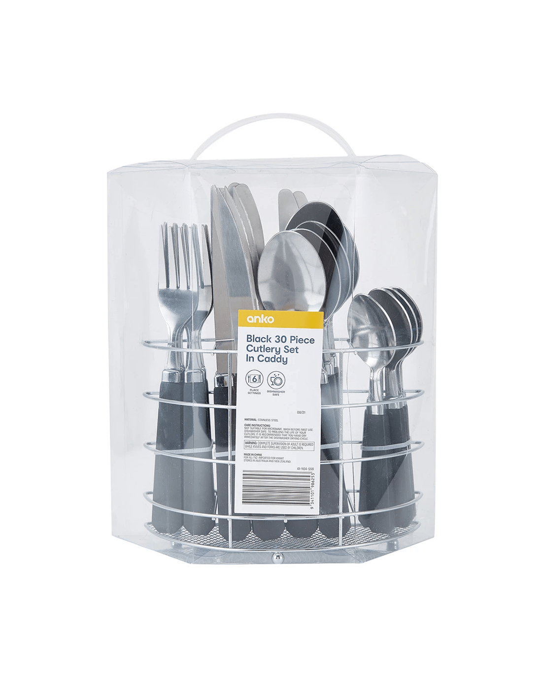Sold by KmartBlack 30 Piece Cutlery Set with Caddy