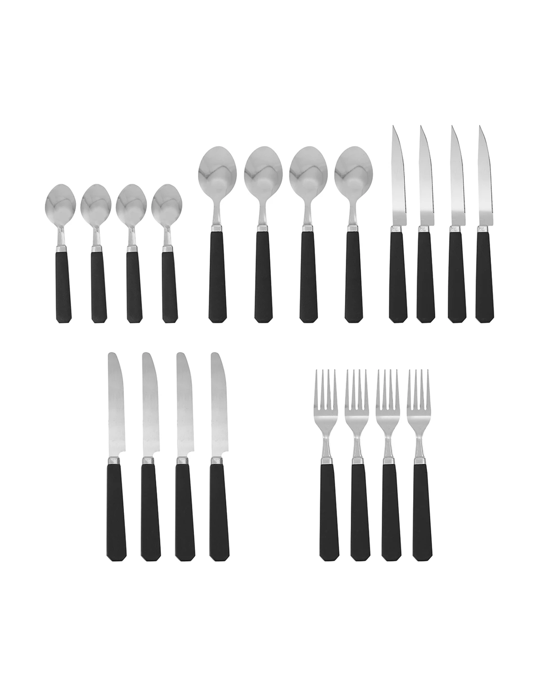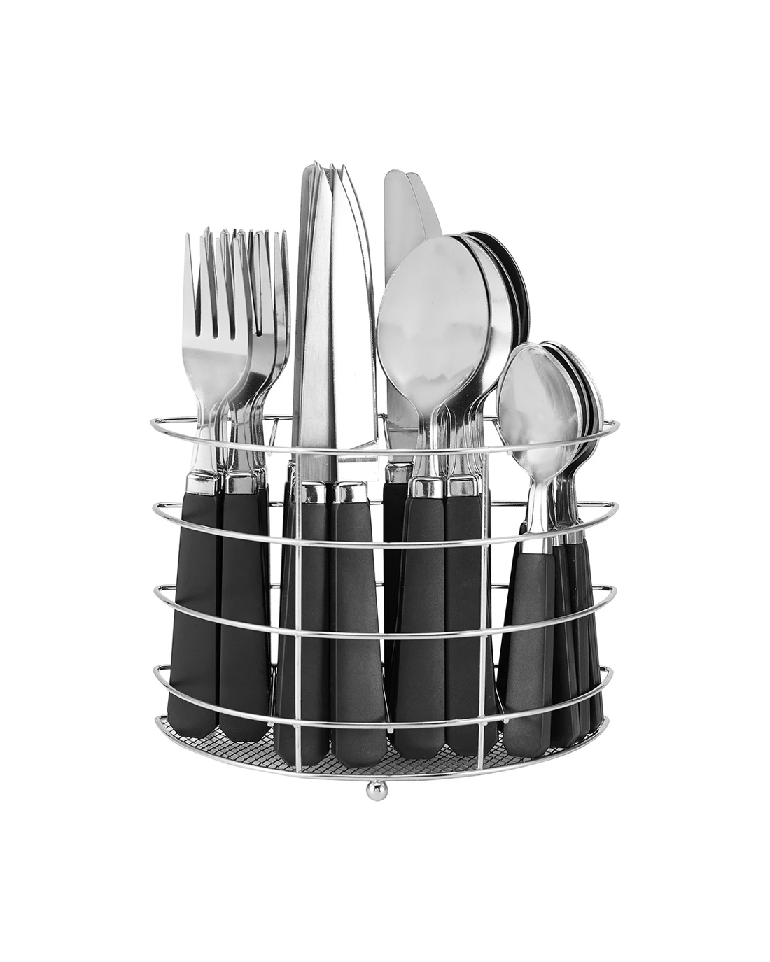 This 30 Piece Cutlery Set with black plastic handles comes in a handy storage Caddy. Ideal for everyday use.