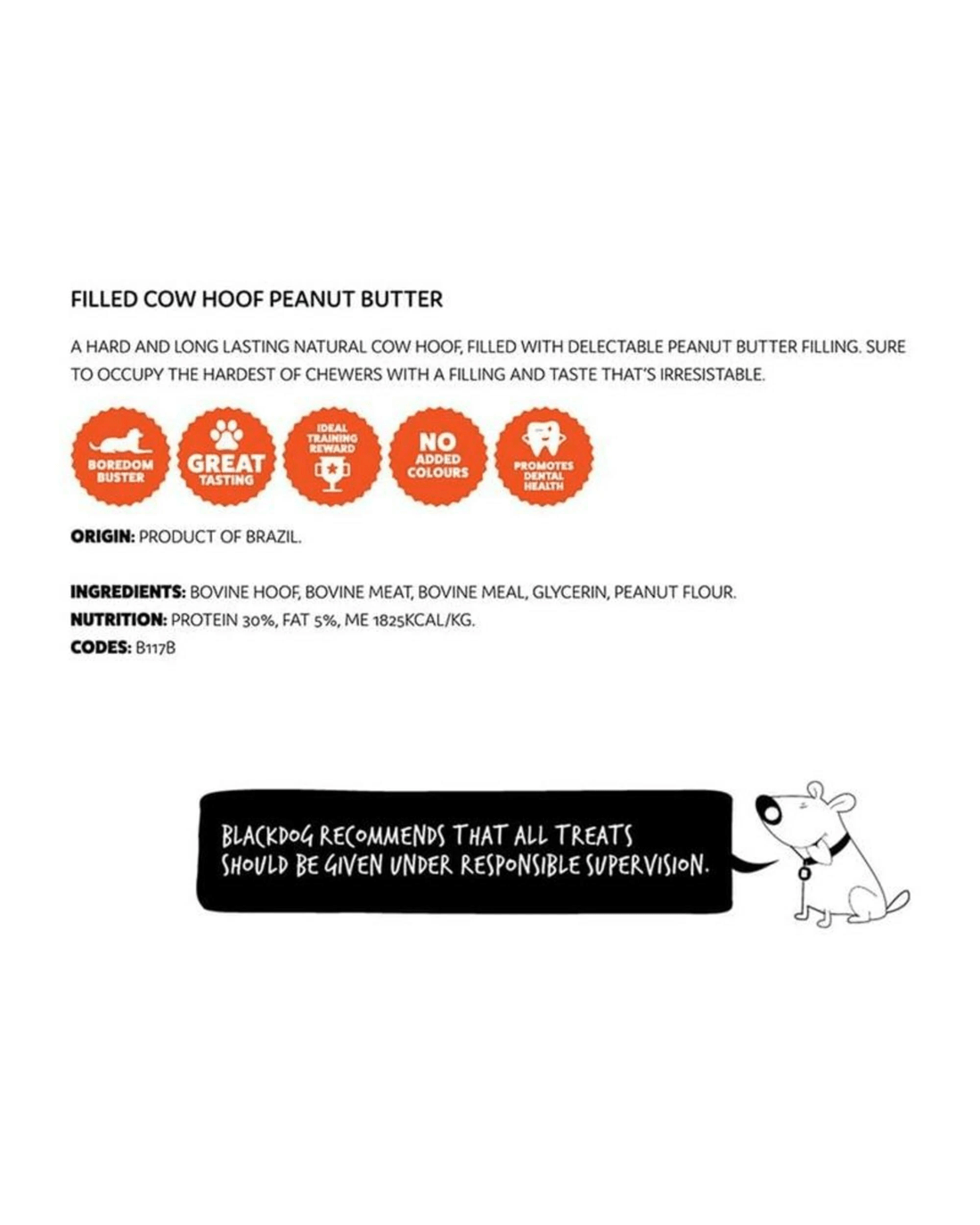 Black Dog Filled Cow Hoof - Peanut Butter