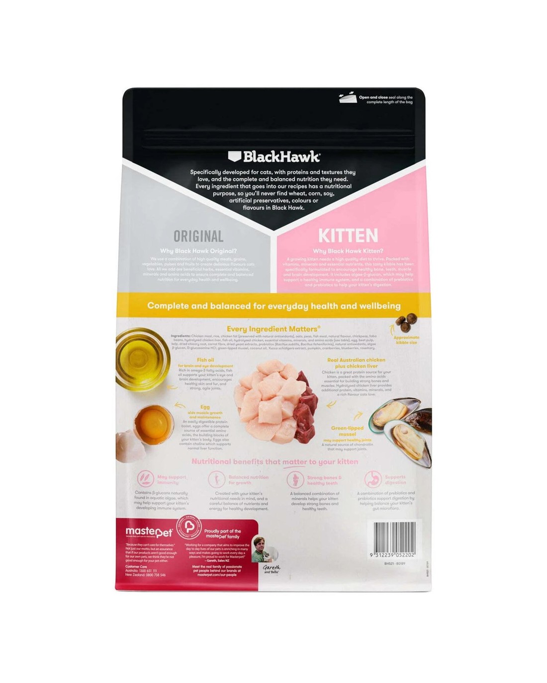 Black Hawk Original Chicken is a high quality, Australian made diet for growing kittens.