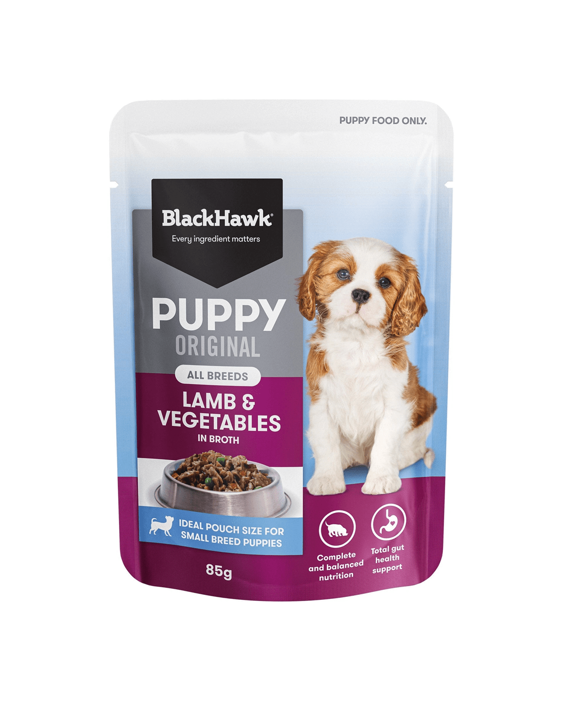Sold by Andala PetsBlack Hawk Puppy Lamb & Vegetables 85g 12pk