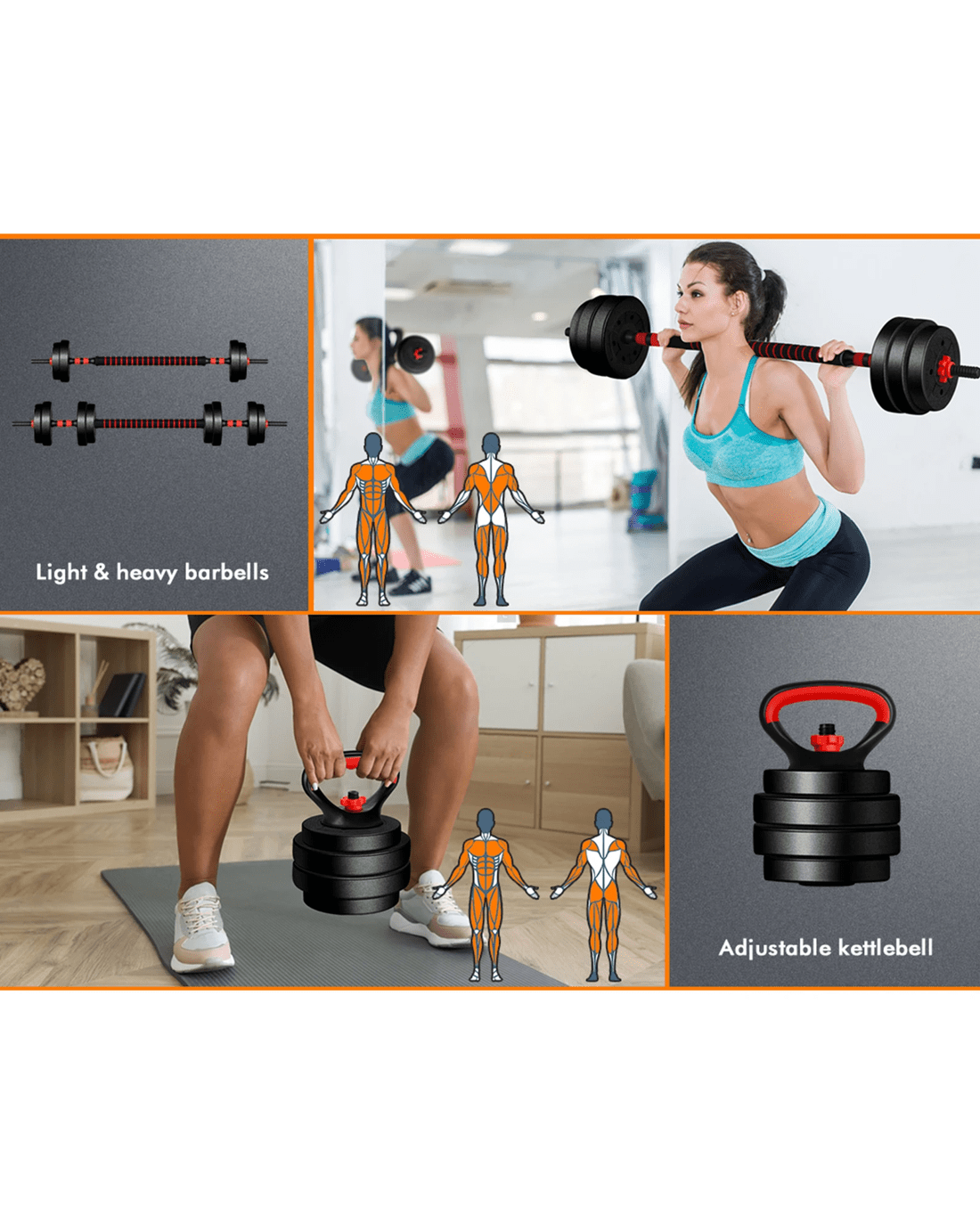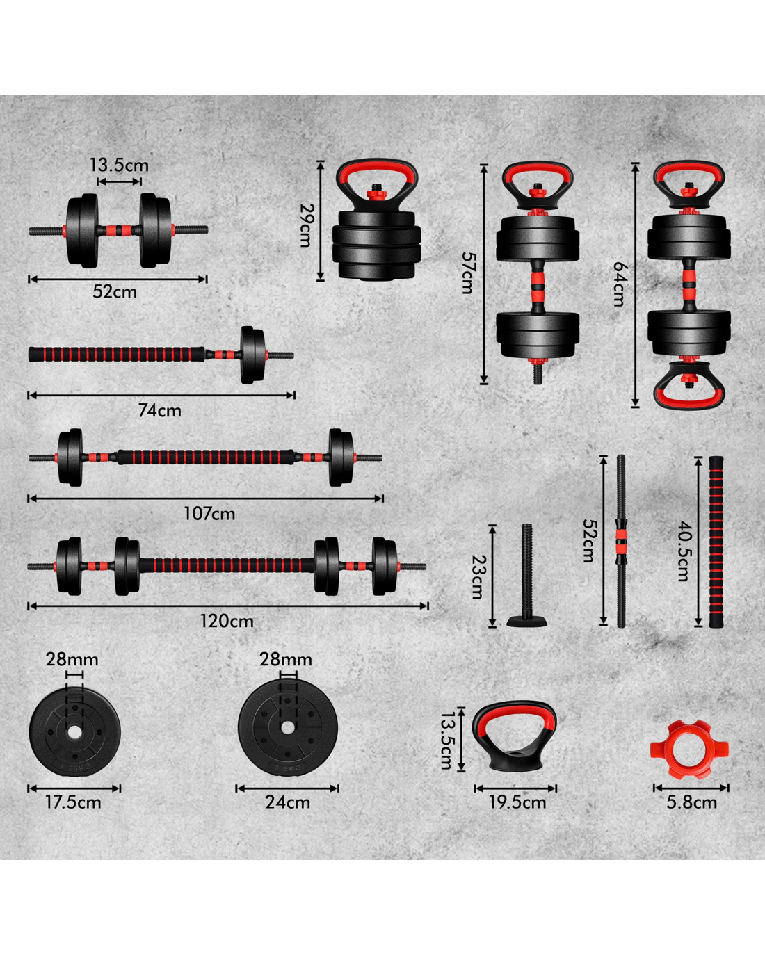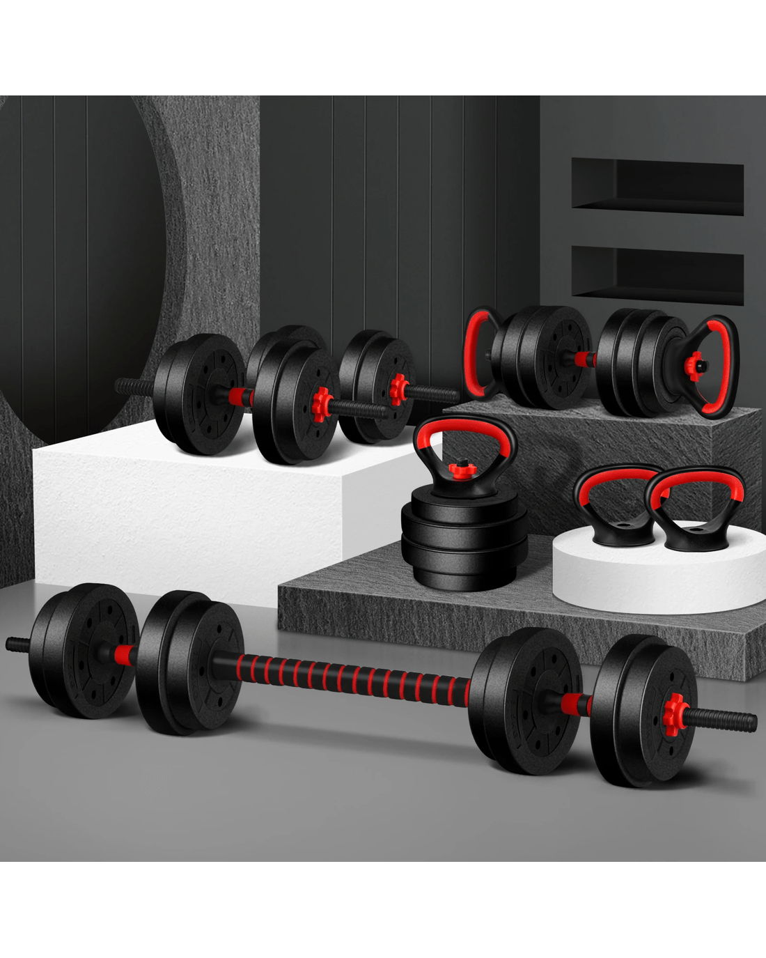 Black Lord Dumbbell Set 7in1 Adjustable Barbell Kettlebell Home Gym Fitness 20kg