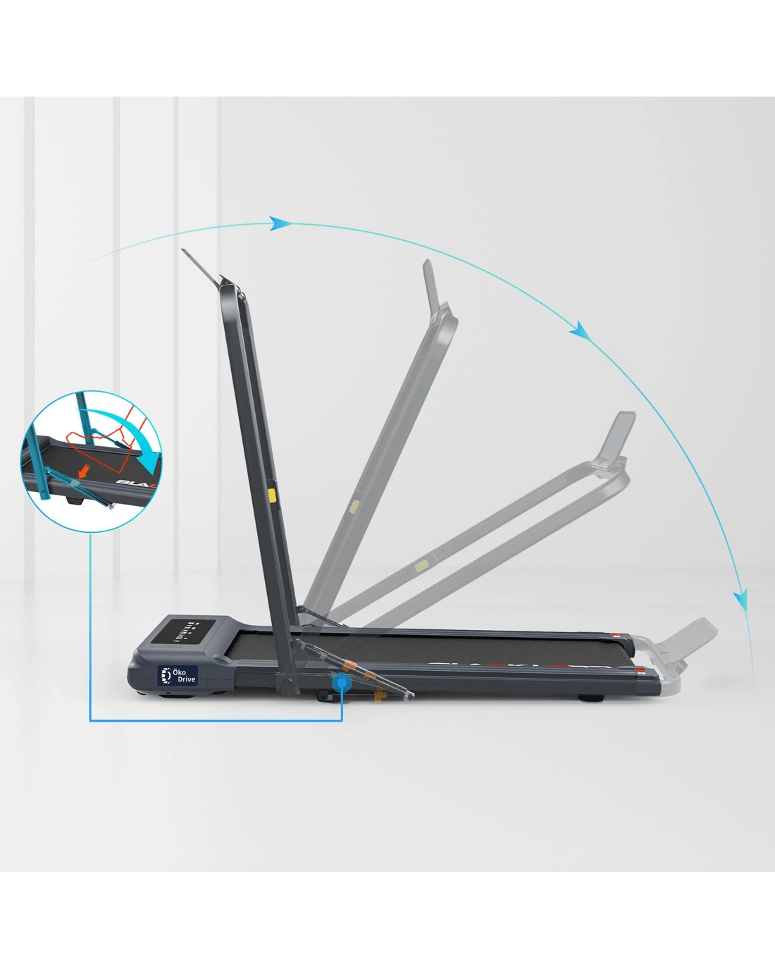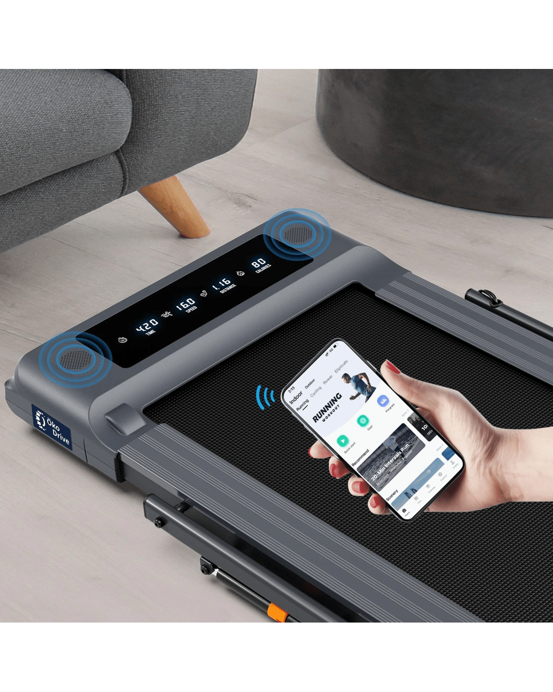 Powered by a 3.3HP OkoDrive motor, this 2-in-1 treadmill seamlessly transitions between Walking Pad Mode (handrails folded with speed 1-10KM/H) and Running Machine Mode (handrails upright with speed 1-16KM/H), giving you the perfect pace whether you're warming up or pushing your limits. Also, you can control your workout effortlessly via remote or the FitShow App, syncing real-time stats to track your progress.