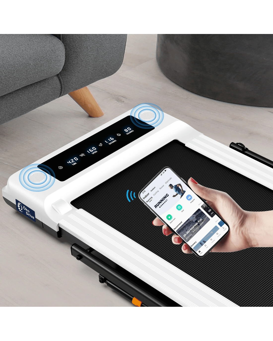 Powered by a 3.3HP OkoDrive motor, this 2-in-1 treadmill seamlessly transitions between Walking Pad Mode (handrails folded with speed 1-10KM/H) and Running Machine Mode (handrails upright with speed 1-16KM/H), giving you the perfect pace whether you're warming up or pushing your limits. Also, you can control your workout effortlessly via remote or the FitShow App, syncing real-time stats to track your progress.