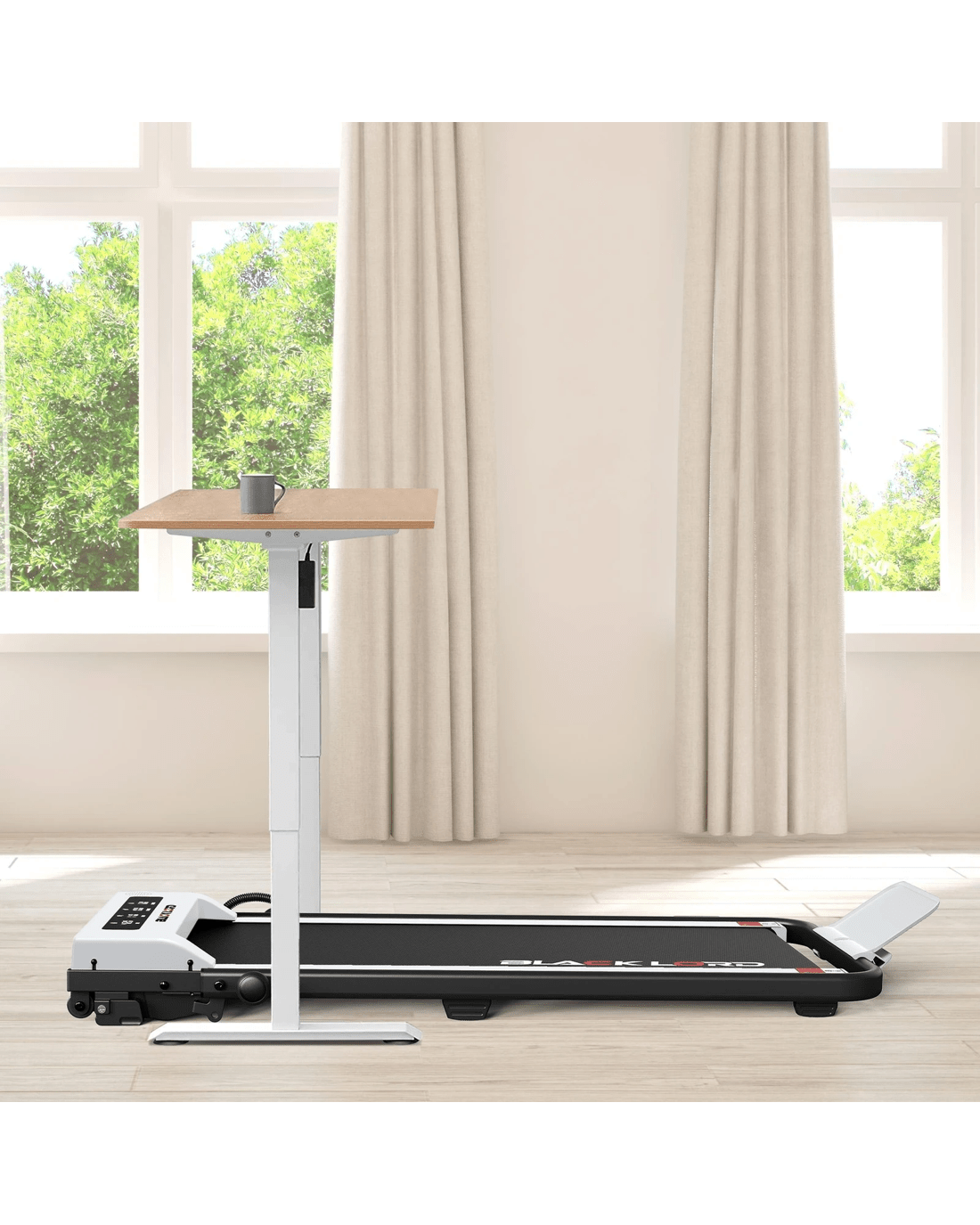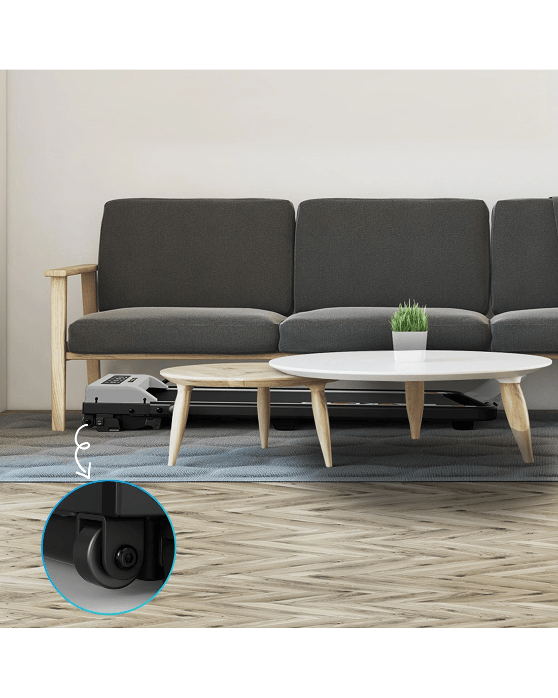 The unique portable wheels make it a breeze to move around and store it under the sofa or bed. Whether you're working at a standing desk, watching TV, or squeezing in a quick exercise session, this under desk treadmill helps you stay active without interrupting your day.