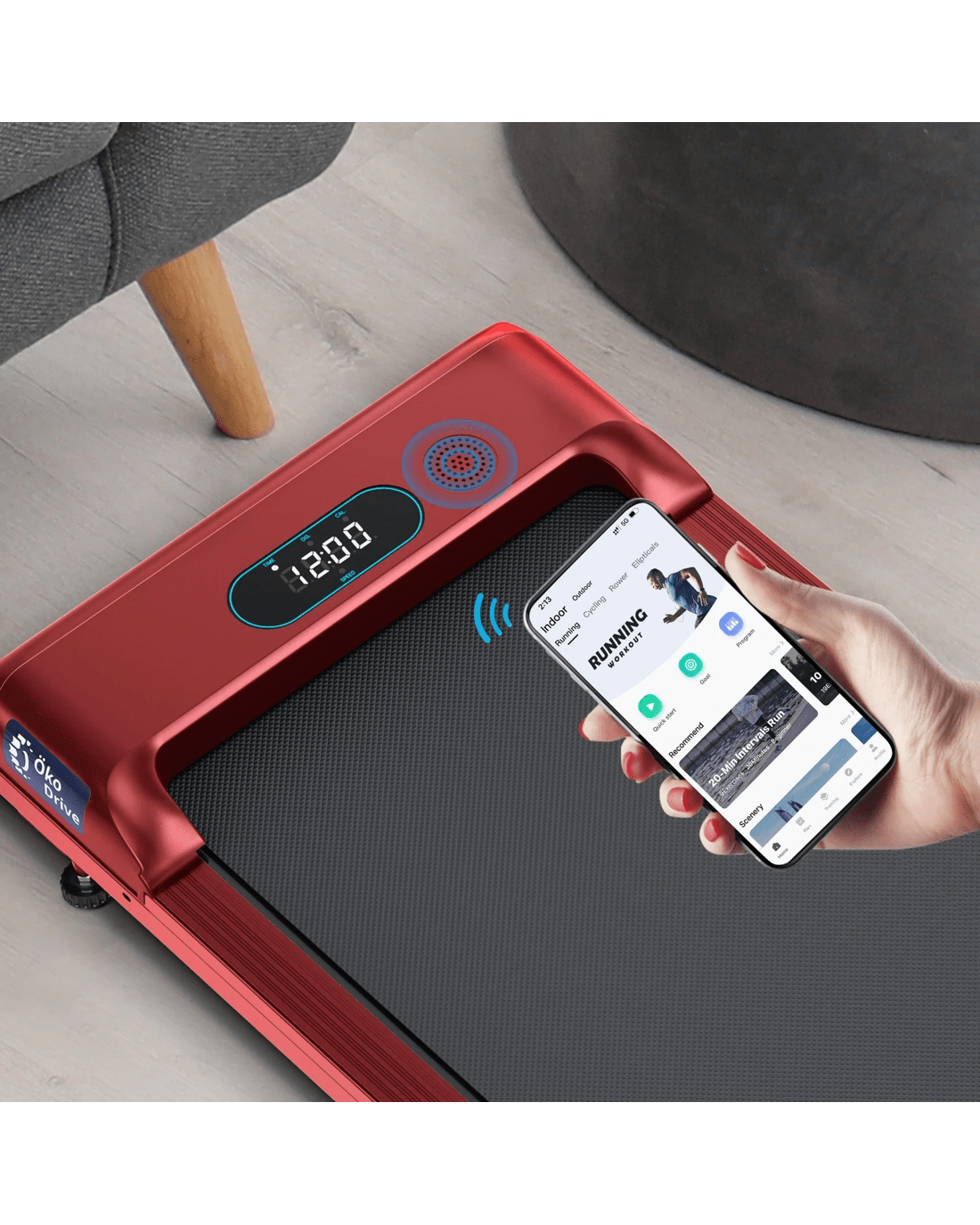 This Walking Pad SL9 is the ideal piece of in-home exercise equipment to get you moving and burning calories on a daily basis. With the unique built in Bluetooth technology, it allows wireless access to the FitShow App on your phone to sync and track your workout stats. Similarly, equipped with a large LED display, you can stay in clear and precise control. It allows you to use metrics like speed, mileage, pulse, calories burned, and more to achieve goals and push your limit. Additionally, this treadmill features a powerful and energy-efficient 2.4HP OkoDrive M3 motor with digital quick speed control of 1-12KM/H. Either remote control or APP control can let you to enjoy the journey at your desired speed.