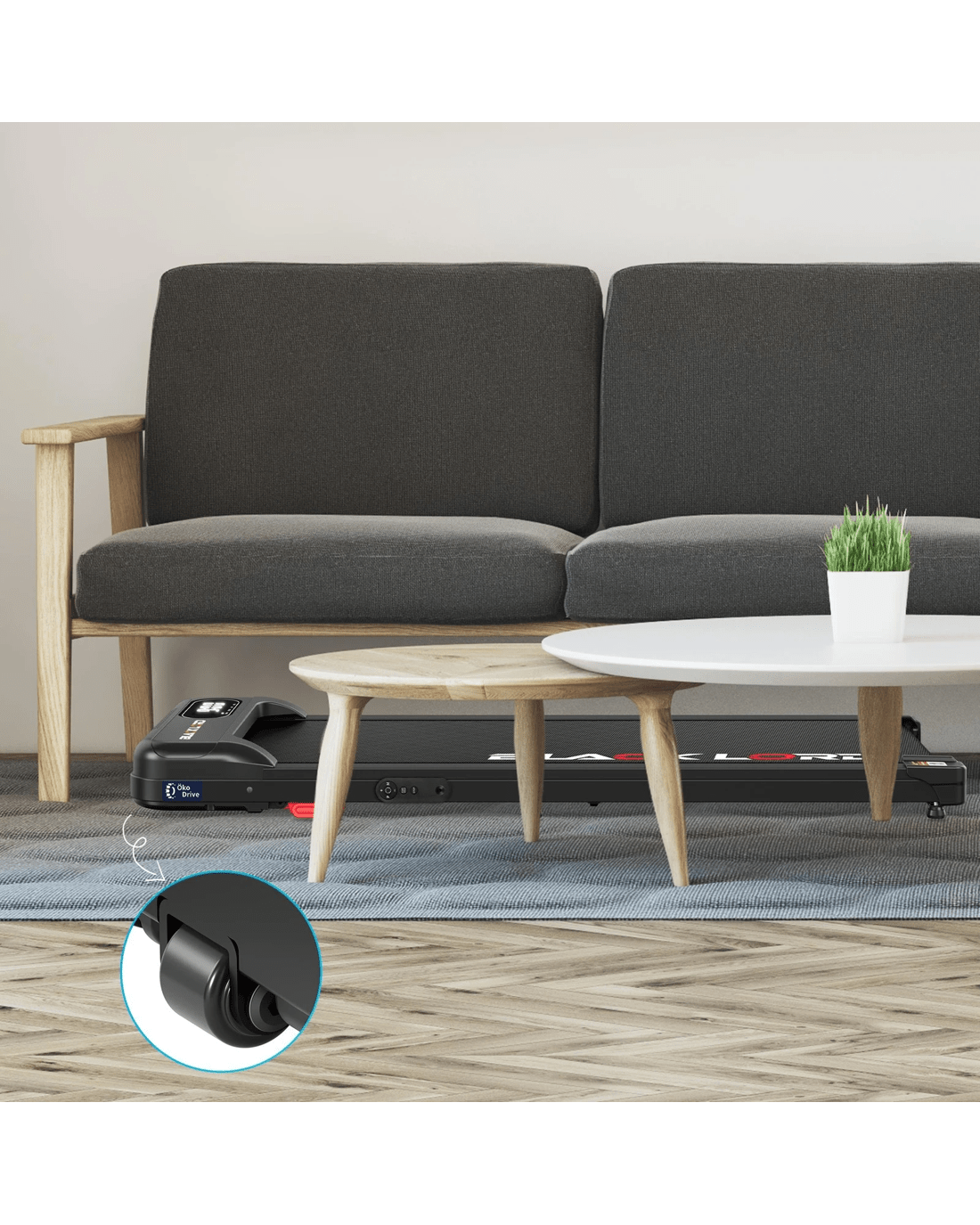 The unique portable wheel design makes it a breeze to move around and store it under the sofa or bed. Compact yet powerful, this walking pad fits seamlessly into your lifestyle. Whether you're working at a standing desk, watching TV, or squeezing in a quick exercise session, this walking pad helps you stay active without interrupting your day.