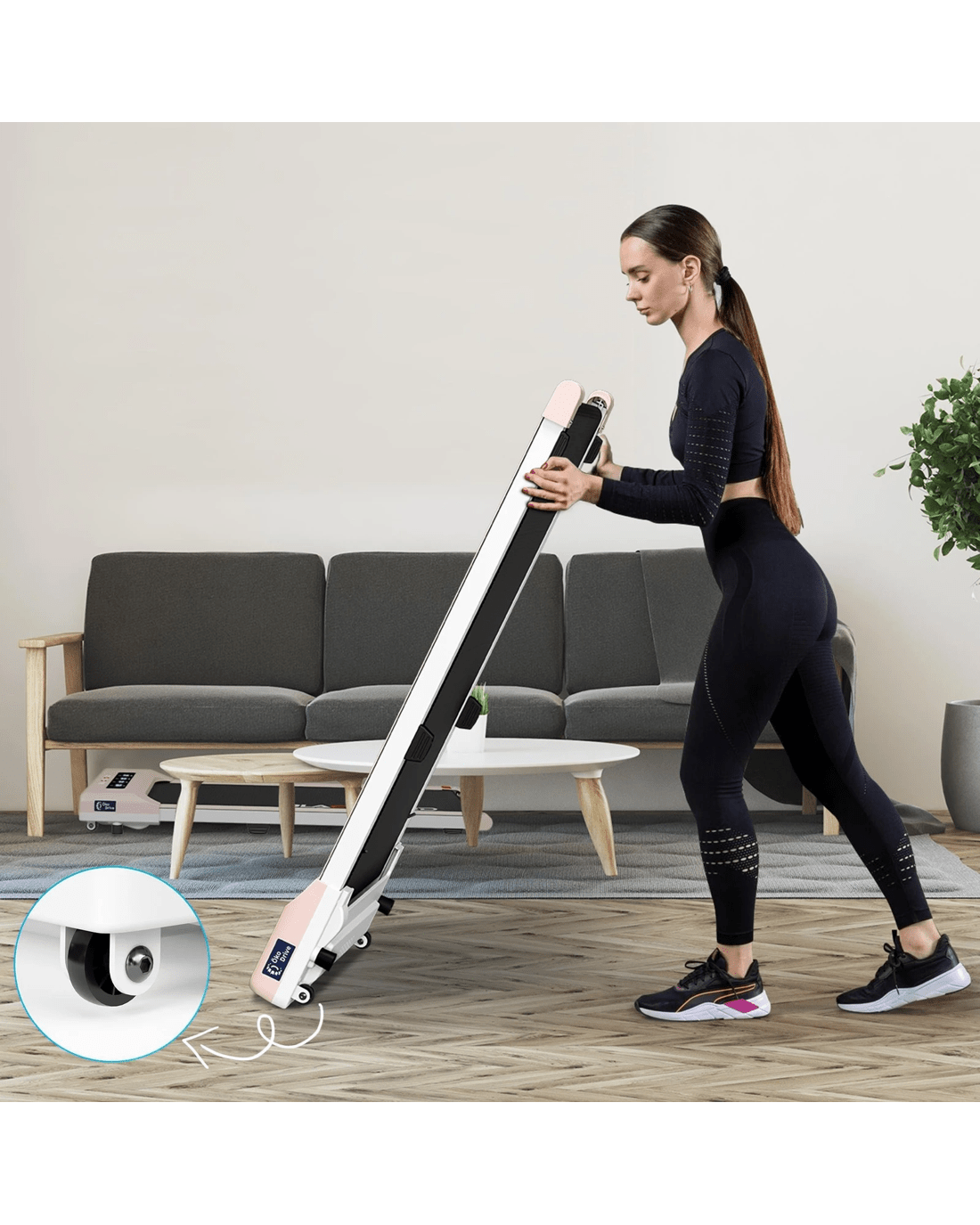 The under desk treadmill is equipped with rubber shock absorbers, specifically designed to reduce impact during workouts. This advanced cushioning system not only stabilizes the treadmill for safer use but also protects your floors from scratches and vibrations-ideal for maintaining a quiet, low-impact environment in homes, apartments, or offices.
