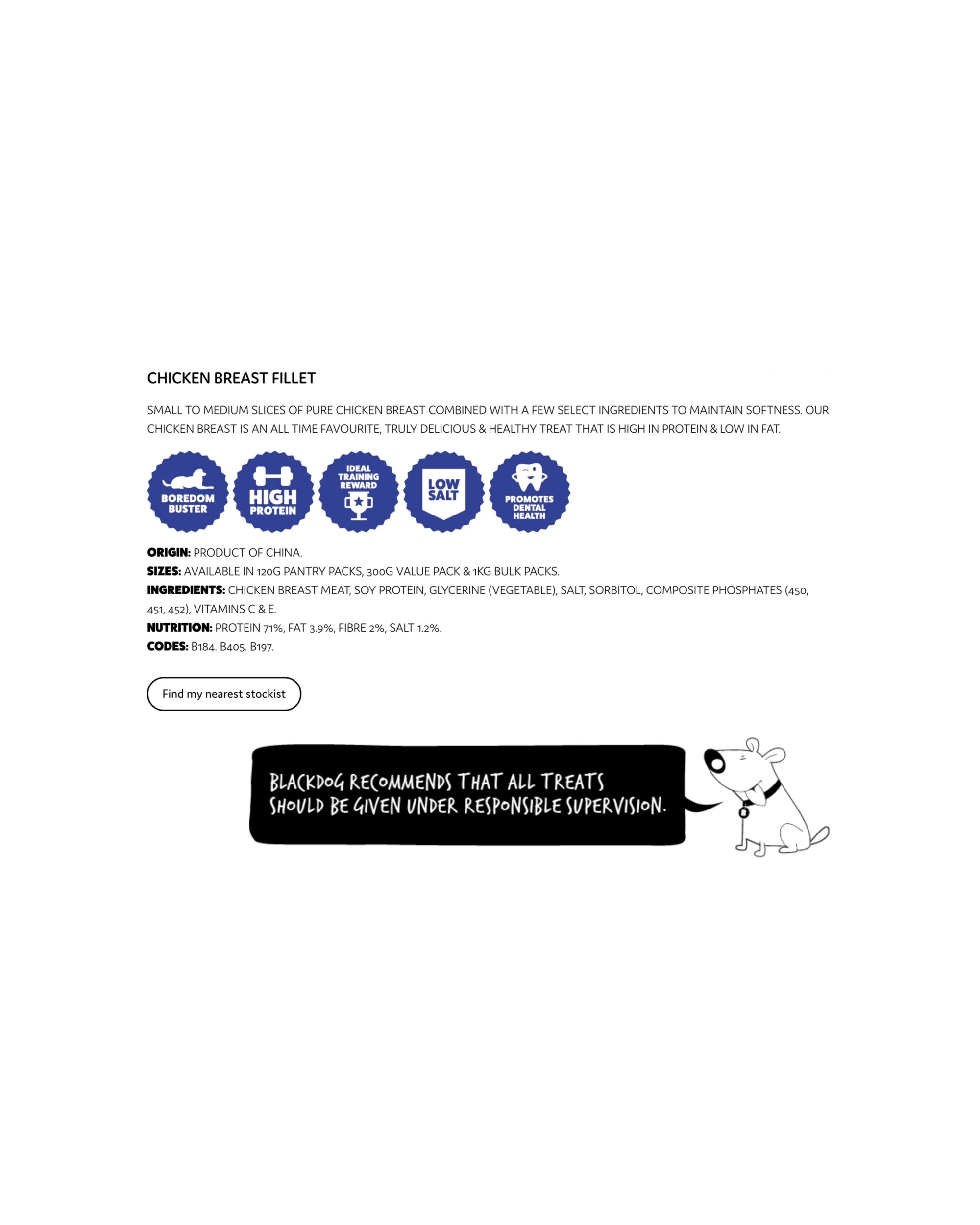 Blackdog 120g Chicken Breast Fillets Healthy Dog Treats Low Fat High Protein - Natural