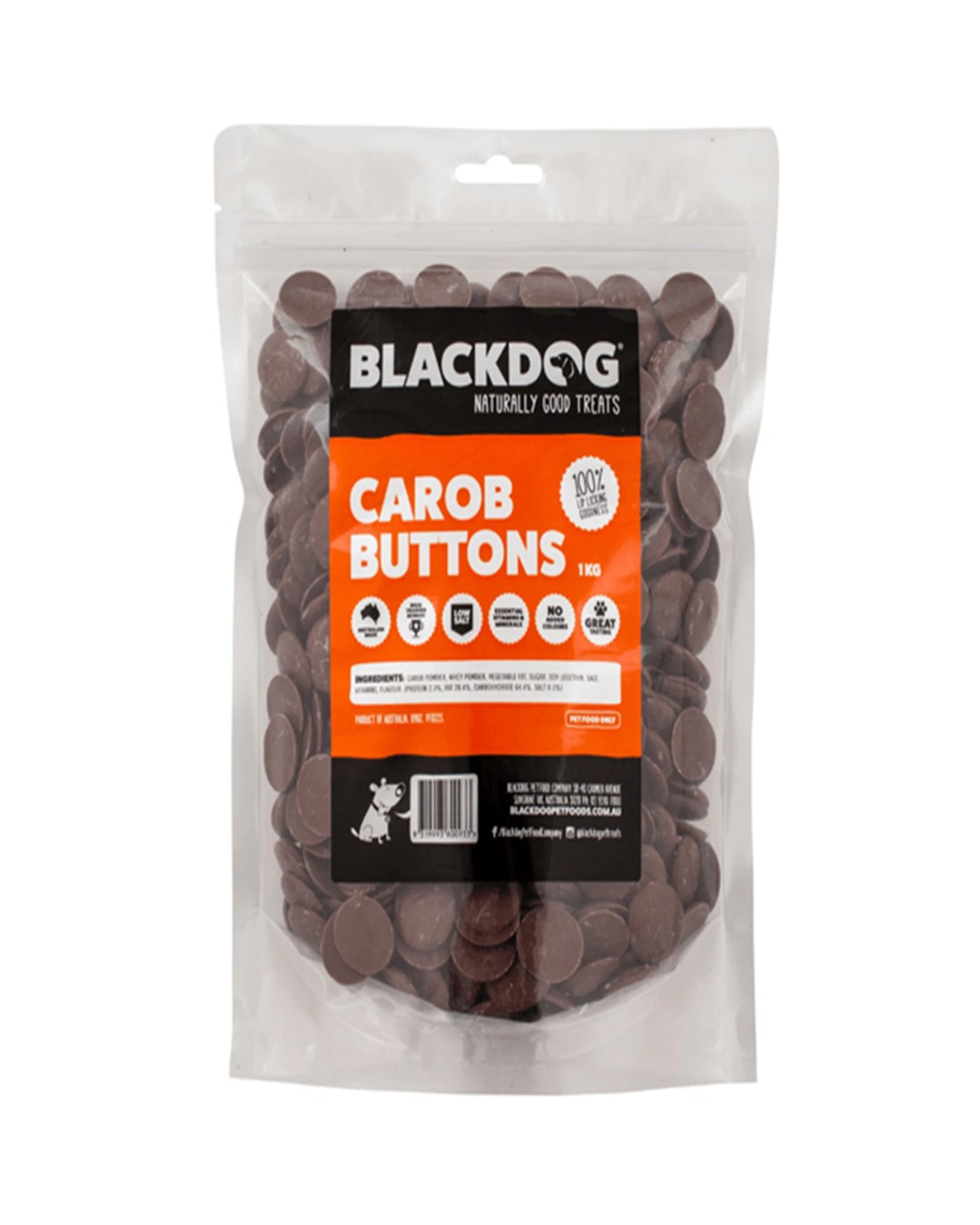 Sold by Sello ProductsBlackdog Dog Treats Carob Buttons - 1kg