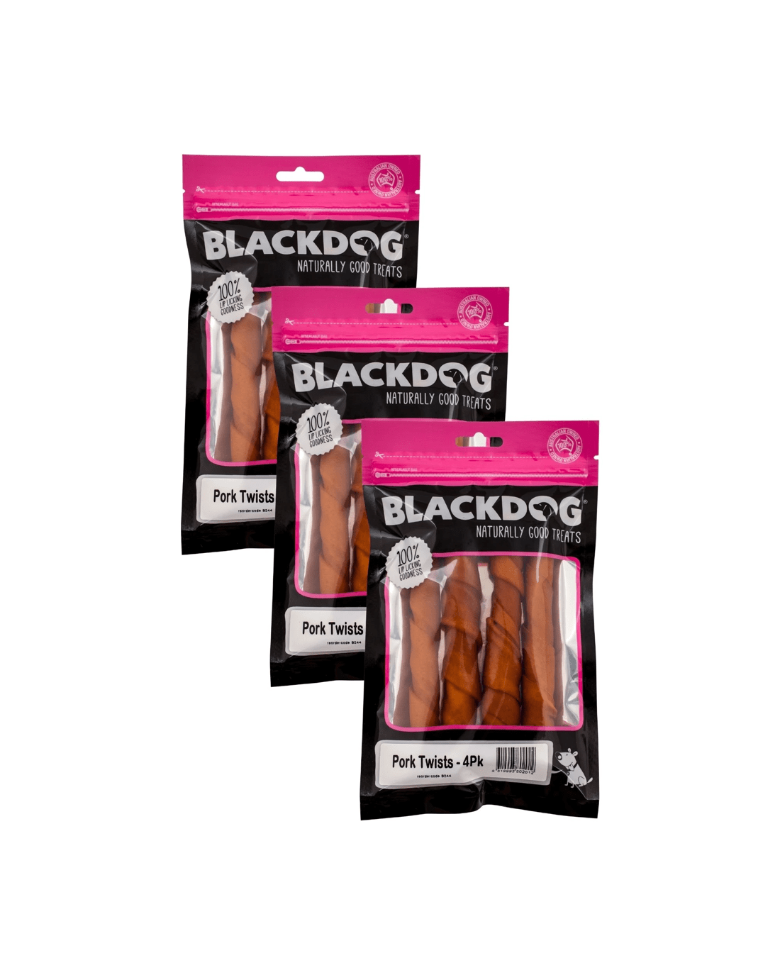 Package Content:3x Blackdog Pork Twists 4 Pack