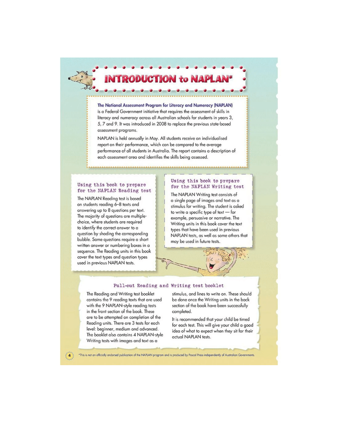 - It also comes with an 8 page pull-out NAPLAN-style test for timed practice.