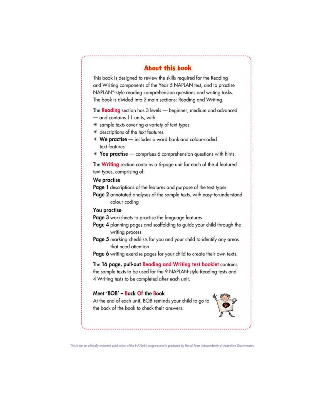 Blake's Back to Basics NAPLAN-style series provides students with the opportunity to practise NAPLAN-style questions in readiness for the Year 5 NAPLAN Reading & Writing tests. This book has been divided between Reading in the front section and Writing in the back section. A variety of narrative, persuasive, and information text types are covered in both parts.