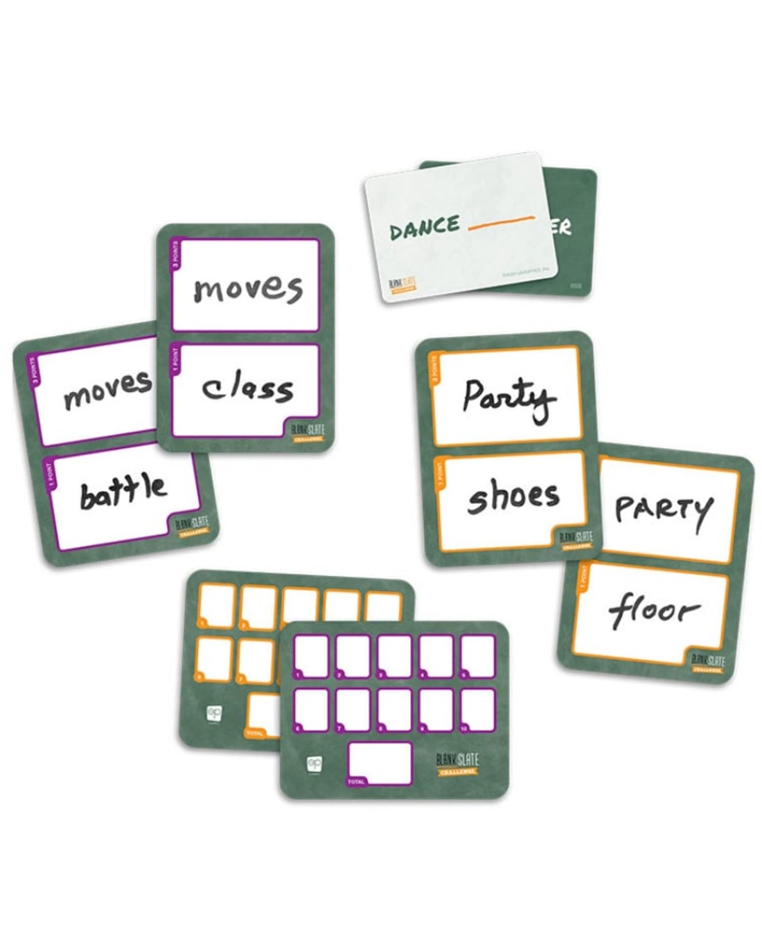 A game of anticipated predictions! Pick from the Word Cue Cards (150 cues in all), write the two words you think best completes the phrase and try to match it exactly to your partners words without giving a single hint. How well can you put your finger on what theyre thinking? Just grab a slate, write your words, and get ready to make a match! Who knows if you get good enough at it, soon you might be finishing each OTHERS ______. Ages: 8 + | Players: 2 or 4 | Playtime: 30 Mins