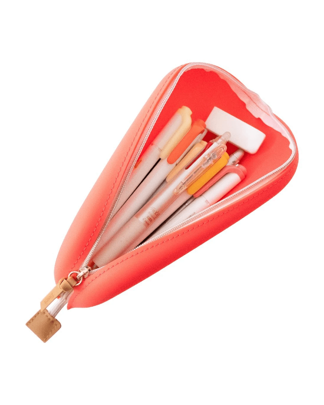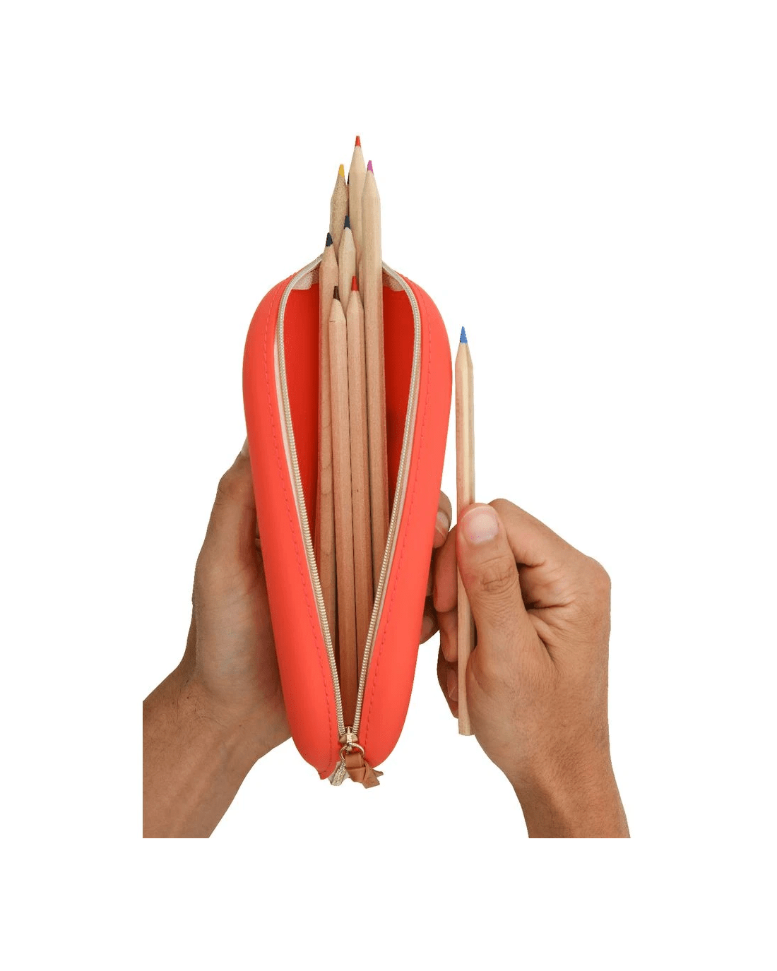 The Bloomin Tray Pencil Case has a unique design that's shaped like a tube when closed and can be folded out into a flat tray to store your pens. It has a soft silicone construction and a fun design making it a bright addition to your workspace.