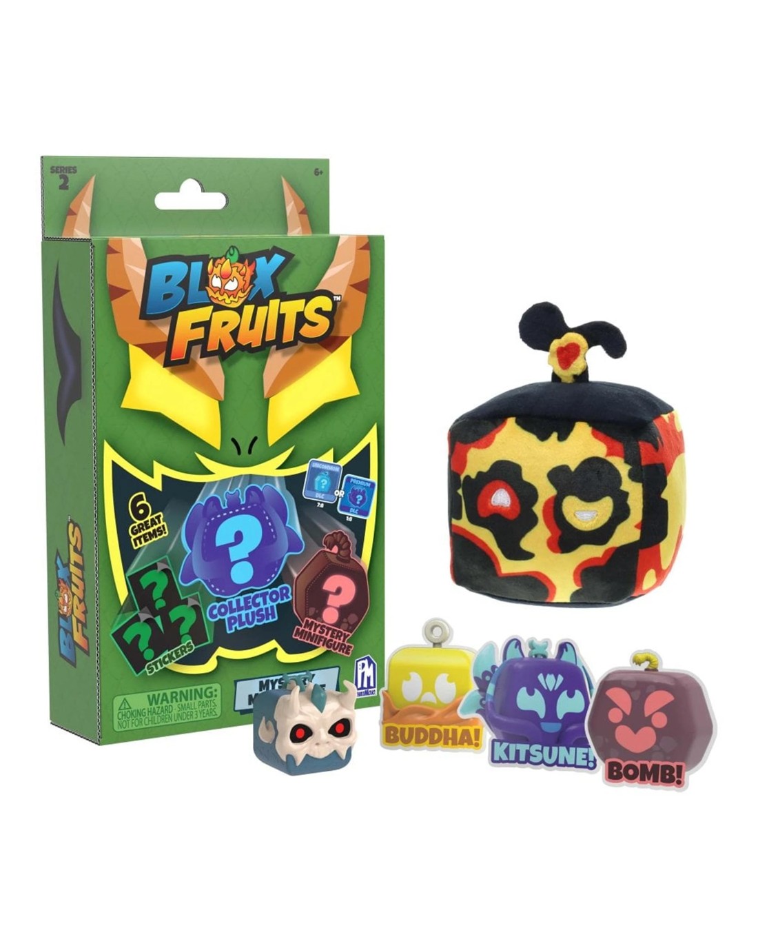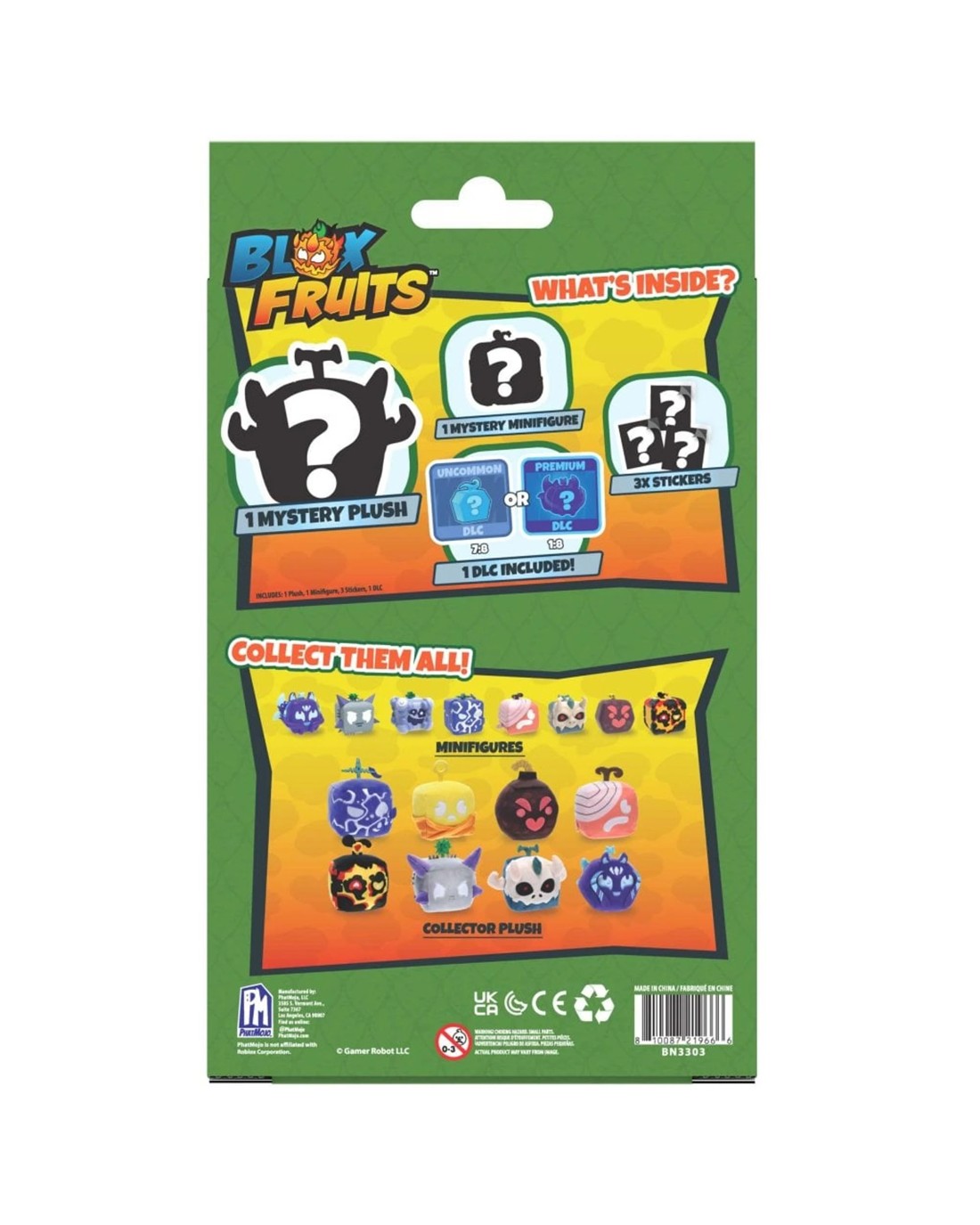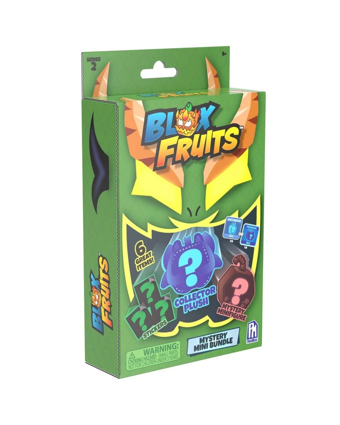 Unlock the Power of Blox Fruits!  Gear up for the ultimate unboxing experience with the Blox Fruits Mystery Mini Bundle - packed with 6 awesome surprises from the smash-hit game! Inside every bundle, you'll find: 1 Mystery Plush - collect fan-favourites like Kitsune, T-Rex, and Spike!1 Mystery Minifigure - will you score Bomb, Smoke, or another epic fruit?3 Stickers - featuring bold designs of top characters like Magma, Pain, and Quake1 DLC Code - unlock exclusive in-game content with either Uncommon or Premium DLC! With collectible characters including Buddha, Smoke, and T-Rex, every box is a battle-ready boost to your real-world collection and your in-game adventure. Which Blox Fruit legend will you find?Collect them all! Ages 6 +