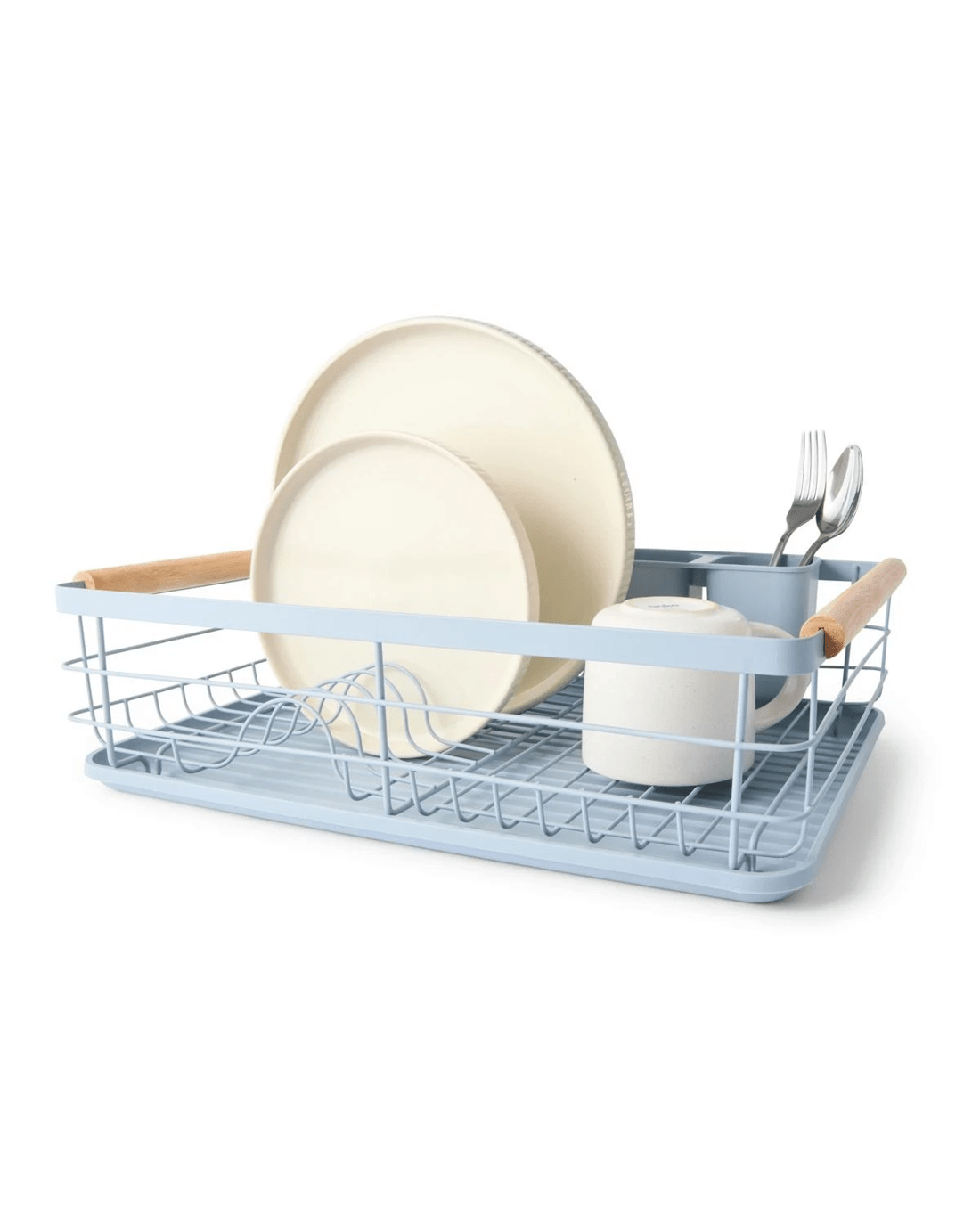 Blue Wooden Handle Dish Rack