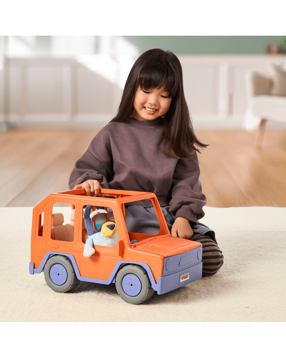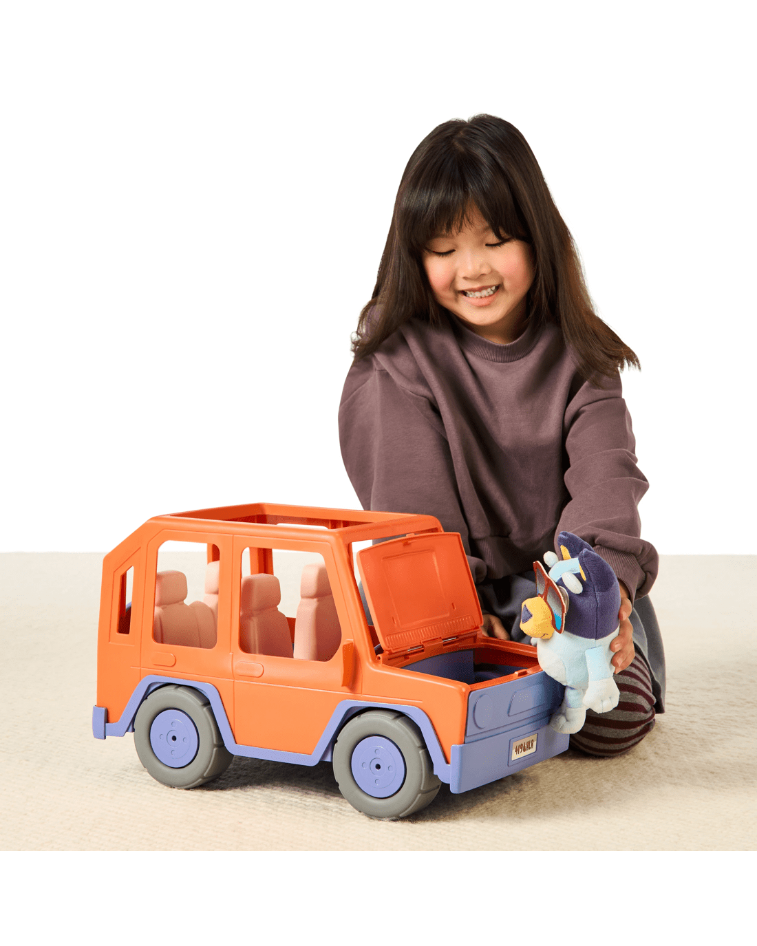 Features- Now kids can take their Bluey Friends plush on a road trip in the Bluey Buddies Big Heeler 4WD