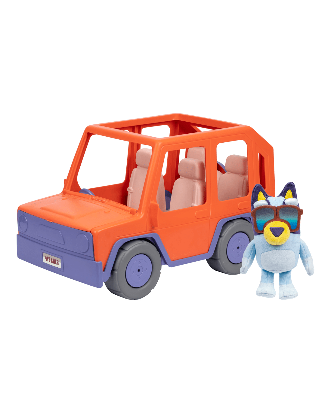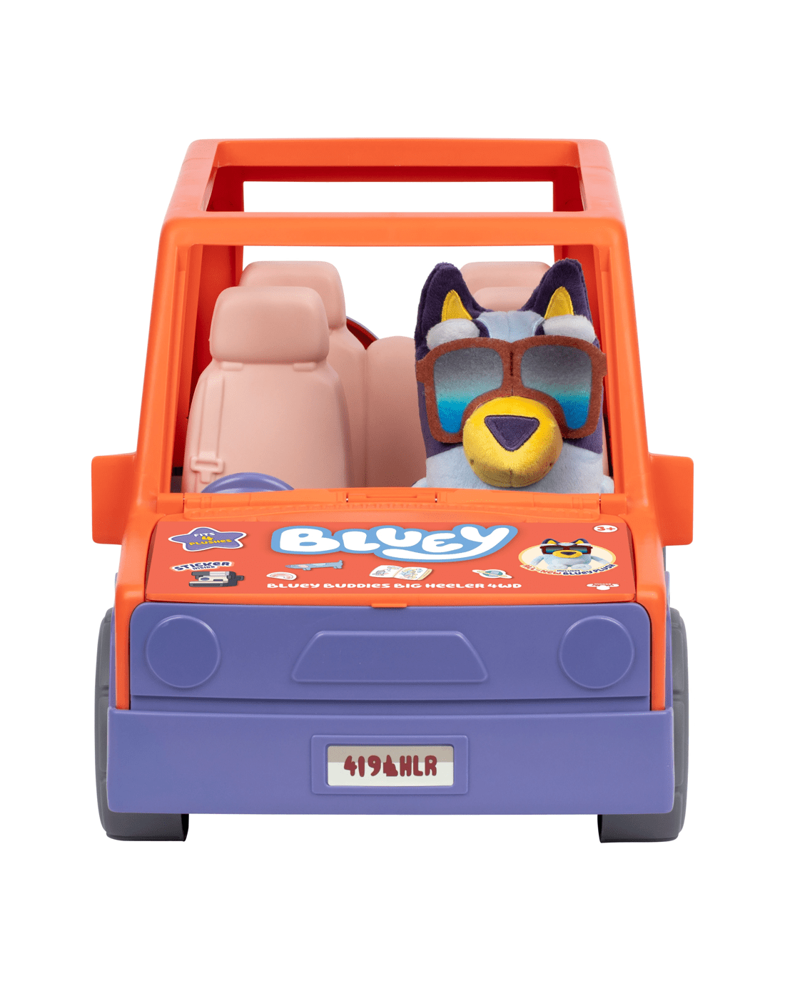 - The Bluey Buddies Big Heeler 4WD car easily fits up to four Bluey Friends plush