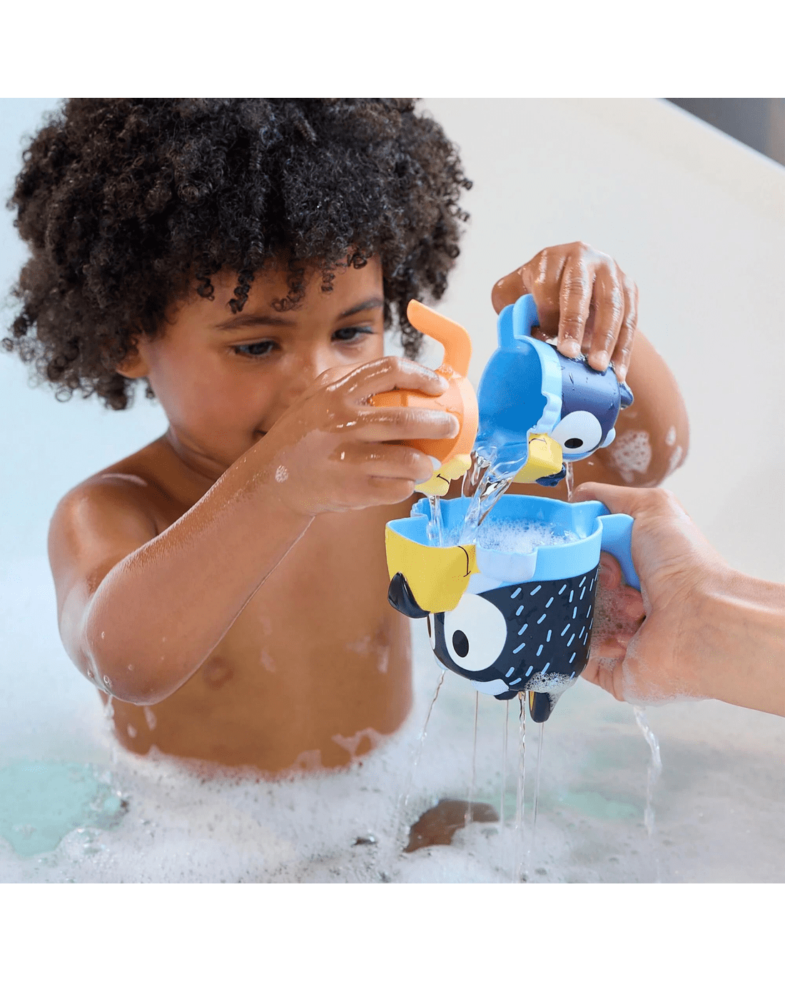 Make bath time even more exciting for your youngster with the Bluey Family Stack & Pour Bath Toy. Each cup features one of the beloved Heeler family members, ready to inspire countless baths of giggles and splashes. These colourful cups are perfect for little hands to stack, nest and pour, keeping your child entertained as they discover new ways to play. Designed for easy gripping, they're fantastic for developing coordination and imagination. Whether your little one is pouring water or creating towers, this set brings the playful world of Bluey to life at bath time. Bring home the fun and let Bluey and her family turn every splash into an adventure.