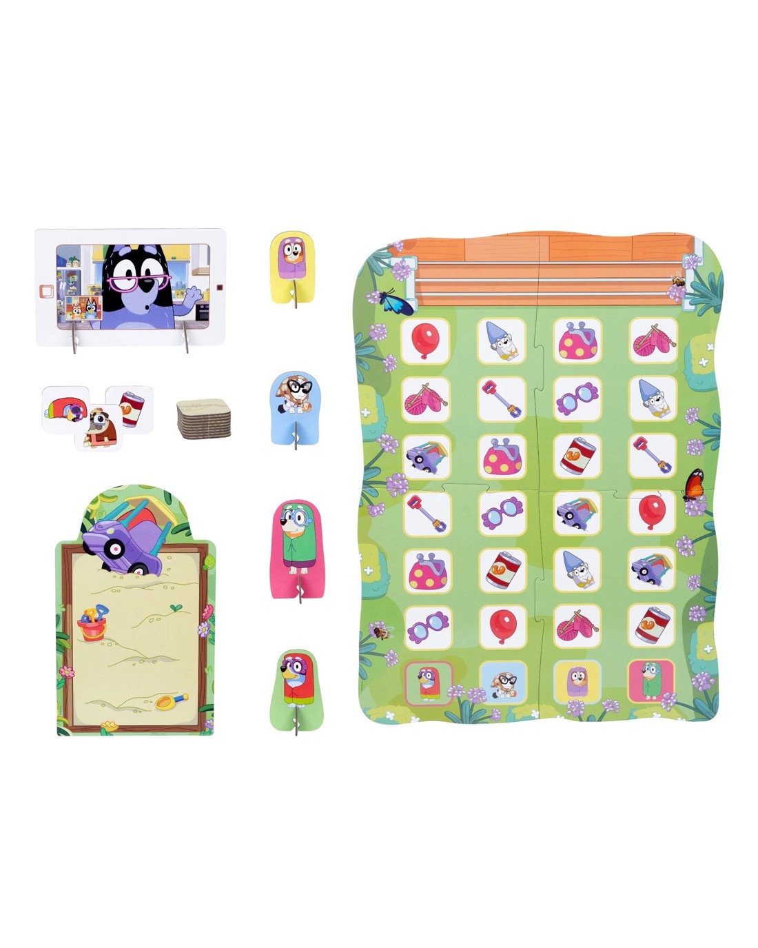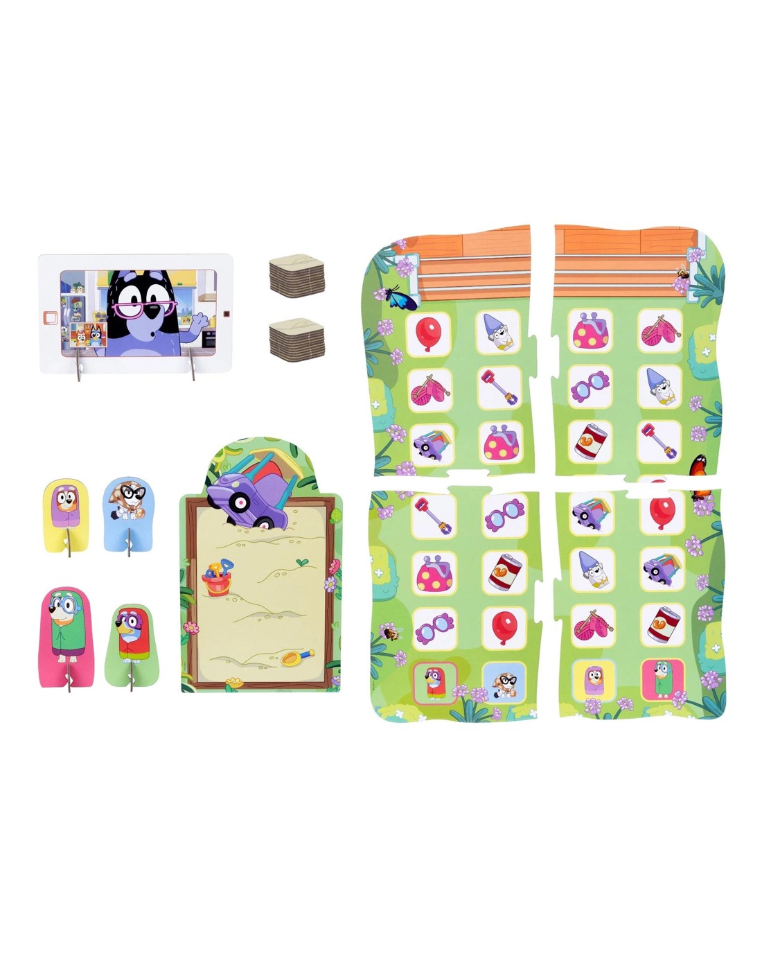 Get ready to giggle with the Bluey Grannies Game!Kids aged 3+ join Bluey, Bingo, and their granny alter-egos — Janet, Rita, Gladys, and Madge — in a race to call Nana and find out: can grannies floss? Inspired by the “Grannies” episode, players collect fun items like glasses and walking sticks to be the first to start a flossing party! With bright, sturdy pieces made for little hands, this game encourages turn-taking, imaginative play, and supports fine motor skills. Perfect for 2 to 4 players. Ages: 3 + | Players: 2 - 4