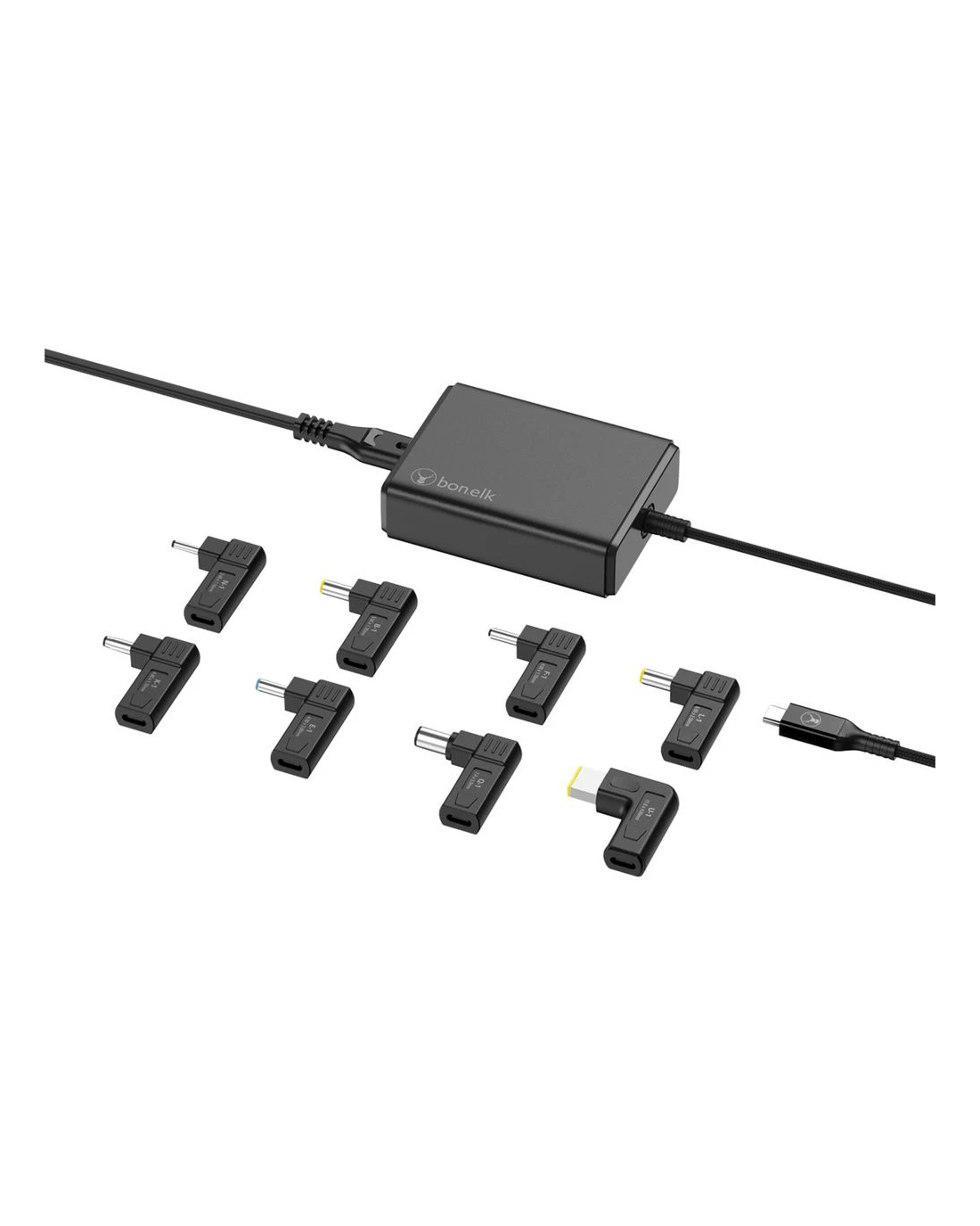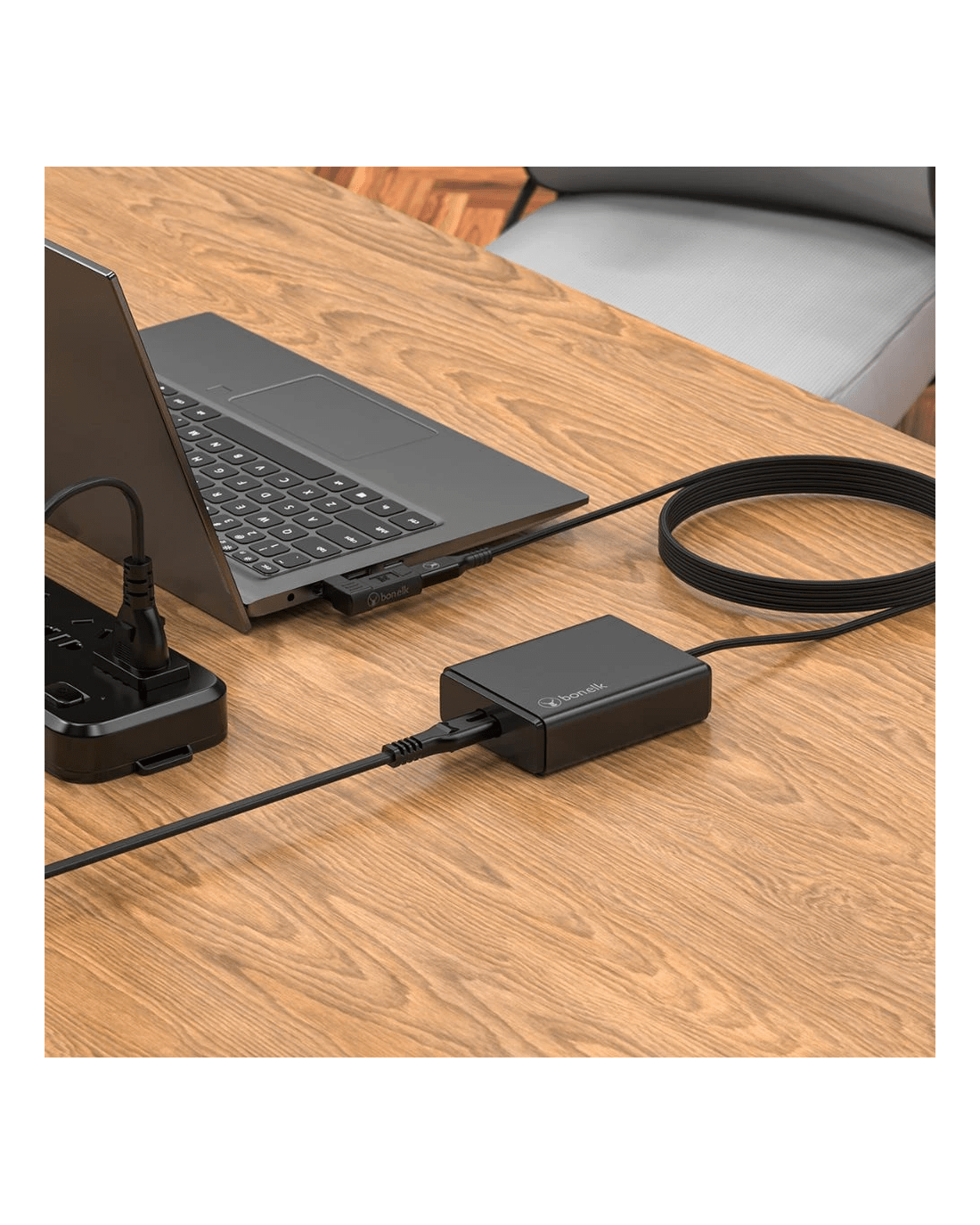 This Bonelk Laptop Charger combines powerful performance with portability, featuring an in-built 1.5m USB-C cable and 8 interchangeable adaptors for broad laptop compatibility. Powered by advanced GaN technology, it delivers fast, safe, and efficient charging, perfect for the office or for when you're out and about.