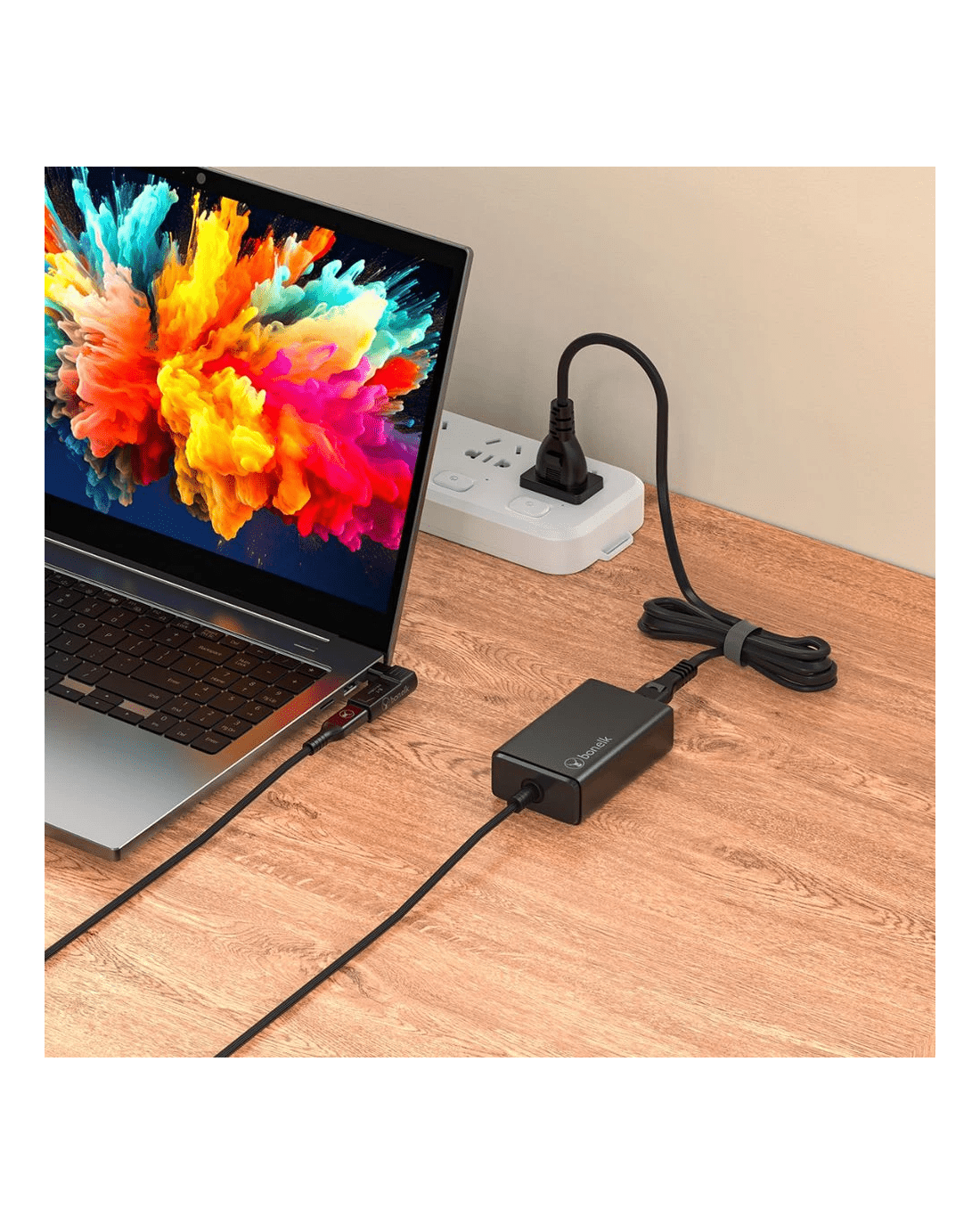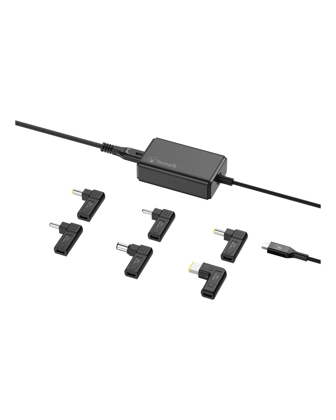 This Bonelk Laptop Charger combines powerful performance with portability, featuring an in-built 1.5m USB-C cable and 6 interchangeable adaptors for broad laptop compatibility. Powered by advanced GaN technology, it delivers fast, safe, and efficient charging, perfect for the office or for when you're out and about.