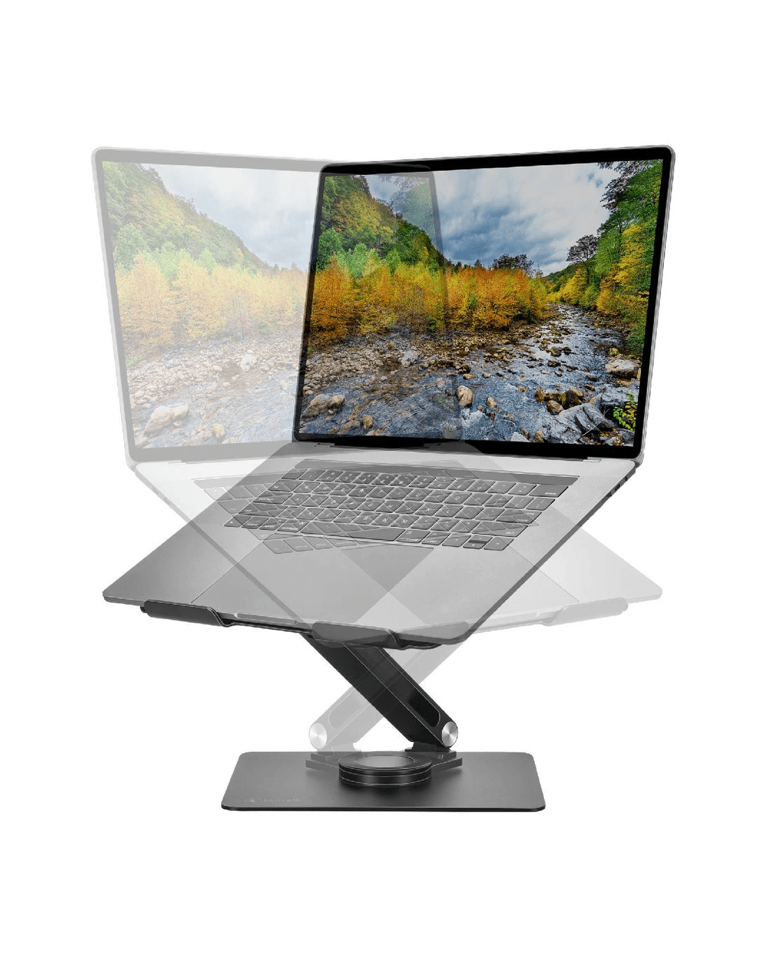- It features a 360° rotatable arm connected to the base allows you to swivel your laptop to any angle for improved ergonomics.