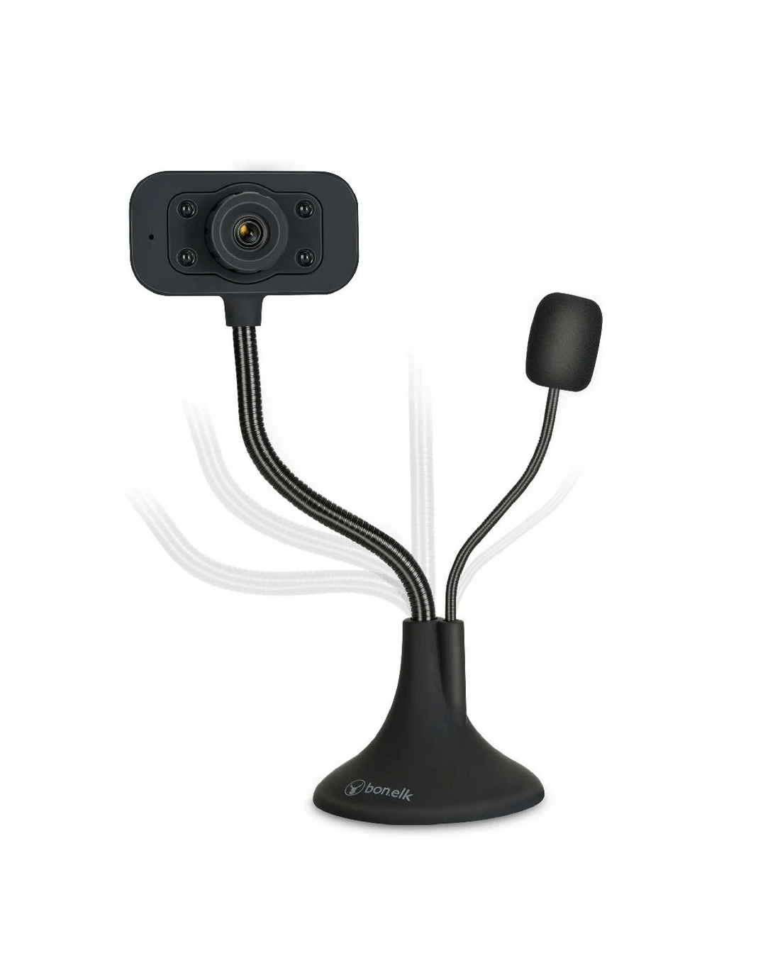 The Bonelk 1080p FHD USB Webcam has a flexible neck design that allows you to manoeuvre the camera and the microphone independently to capture all your best angles, while placing the mic in the optimum position to pickup your audio. Experience clear and smooth video calling with Bonelk.