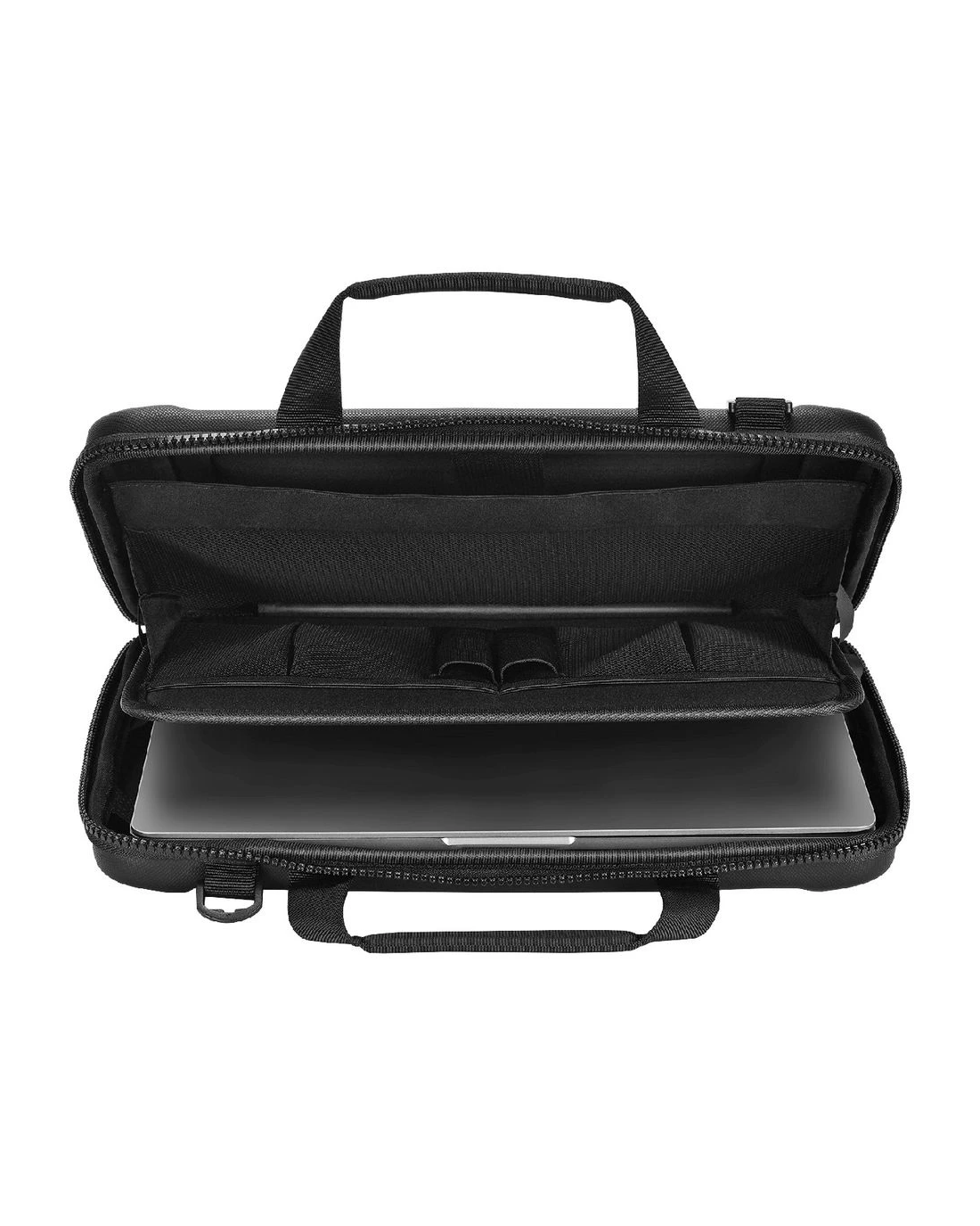 - Choose to carry your laptop by the top handle briefcase style, or over the shoulder with the removable, adjustable carry strap.