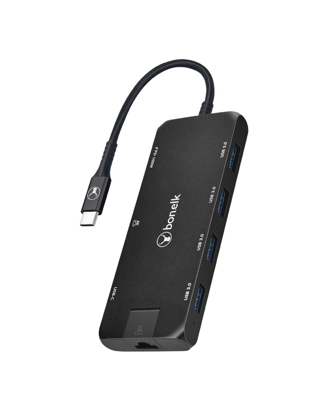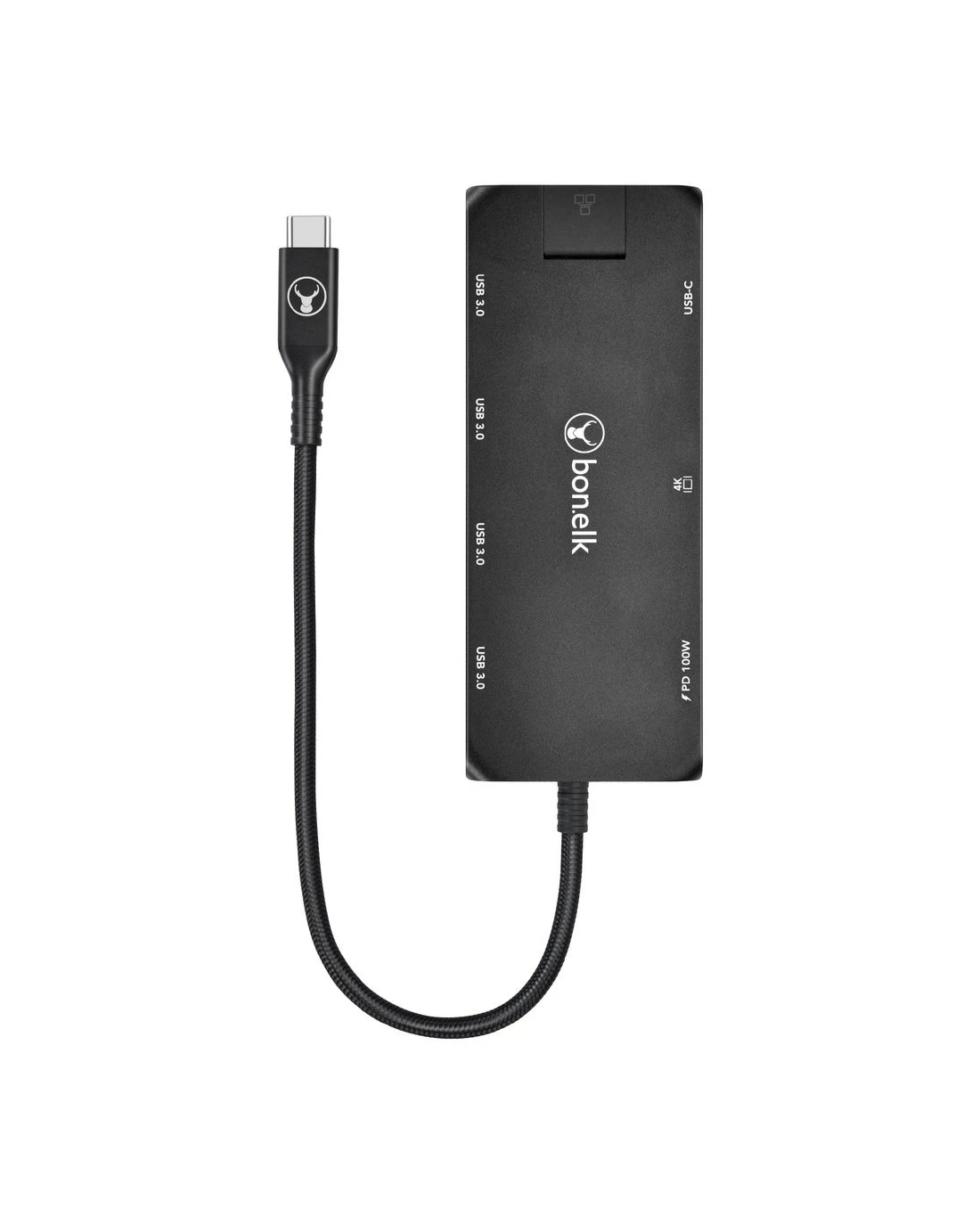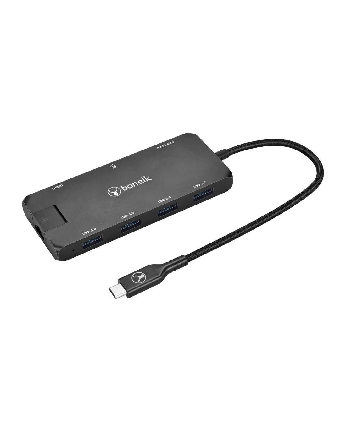 - This Bonelk 8-in-1 multiport hub offers connections via HDMI (4K @ 30 Hz, Full HD 1080p @ 60 Hz), Gigabit Ethernet (10/100/1000 Mbps), 2 x USB-C (Data Transmission, PD Charging 100 W), RJ45 and 4 x USB-A 3.0 ports (SuperSpeed 5 Gbps).