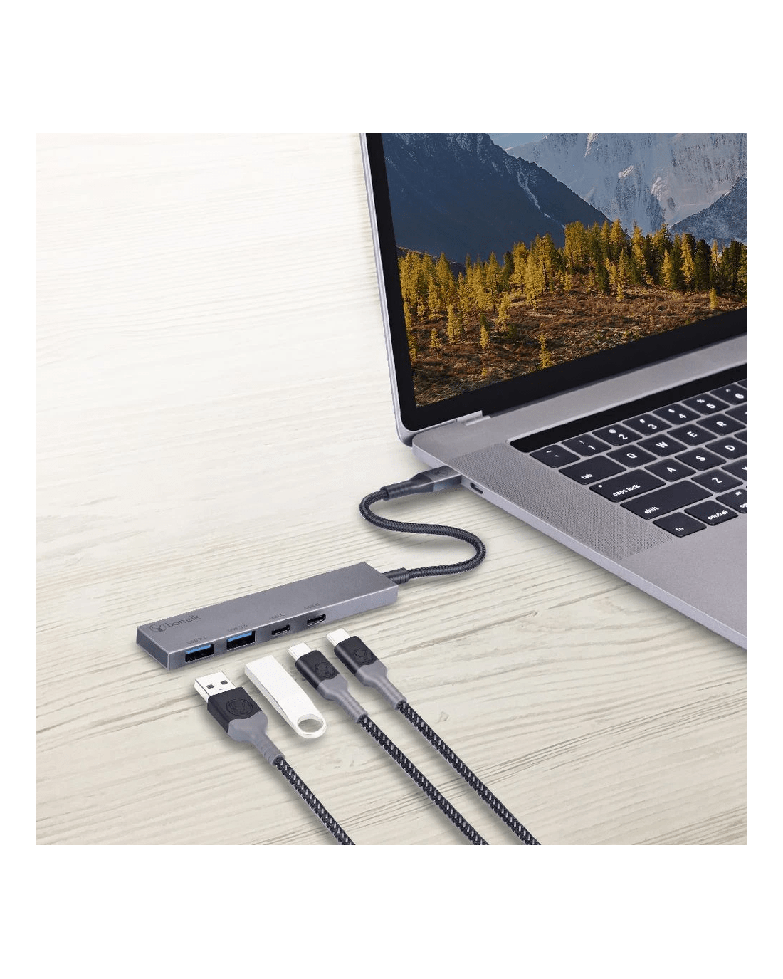 This Bonelk Long-Life USB-C to USB-C/USB-A 4 Port Slim Hub is a great addition to your workspace, allowing the increase of your connectivity options. Crafted using high-quality materials with a durable and long-lasting braided nylon cable jacket, it offers connectivity options via 2 x USB-C and 2 x USB-A ports, supporting 5 Gbps transfer speeds. It comes in a stylish, slimline design with a faux leather pouch with press stud closure for safe storage and easy transportation.
