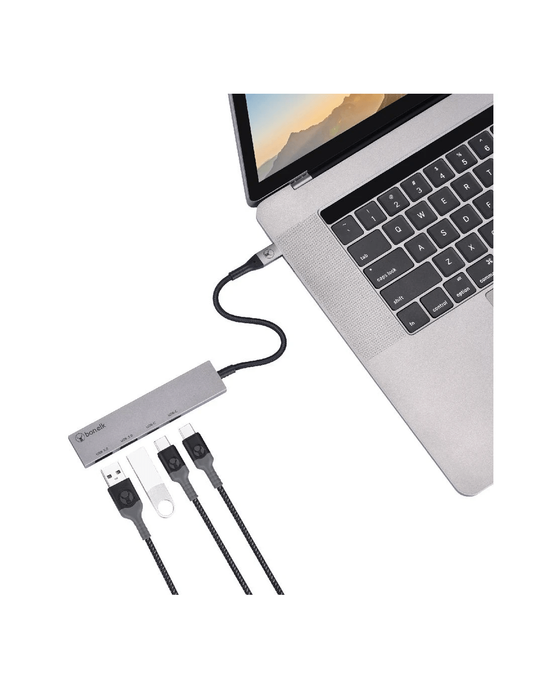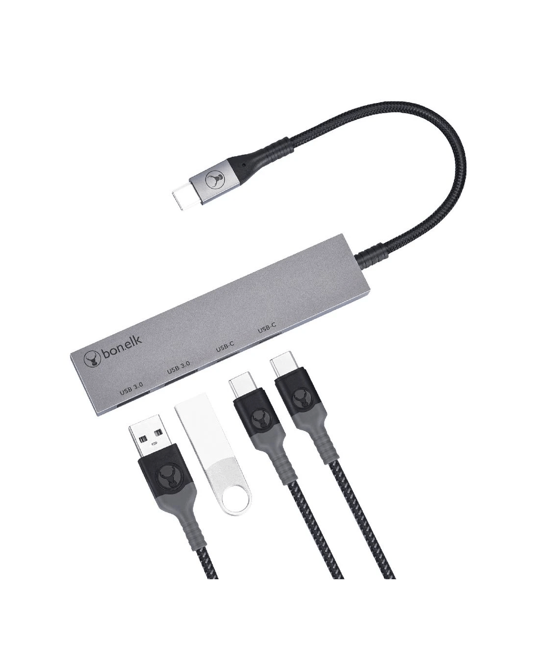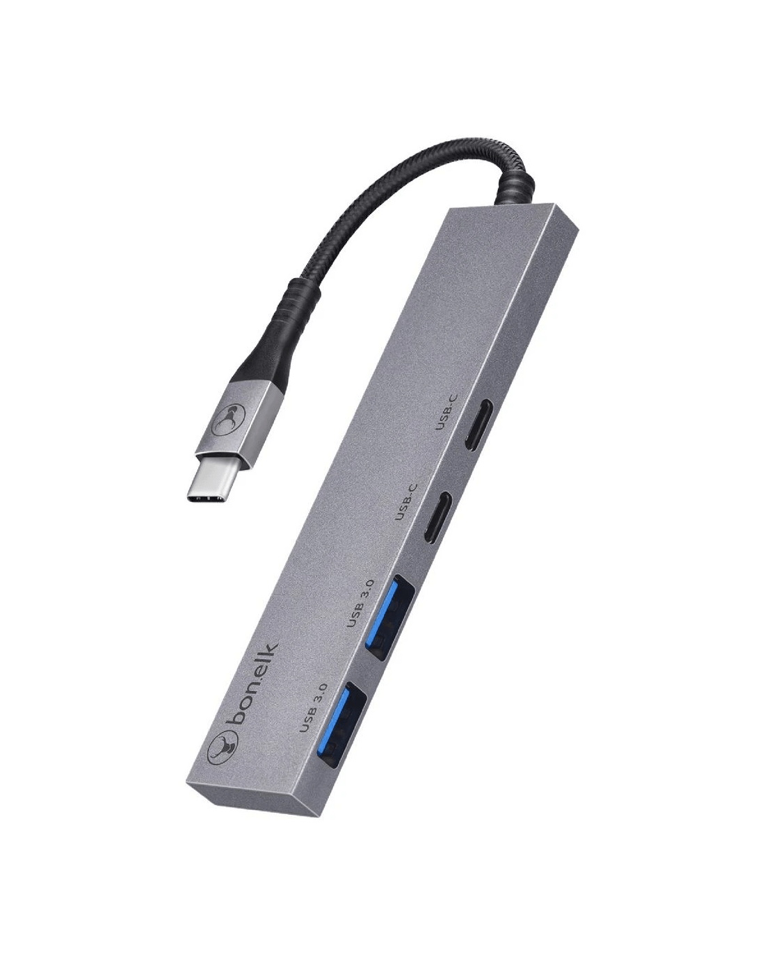Sold by OfficeworksBonelk Long-Life USB-C to USB-C/A 4 Port Slim Hub Space Grey