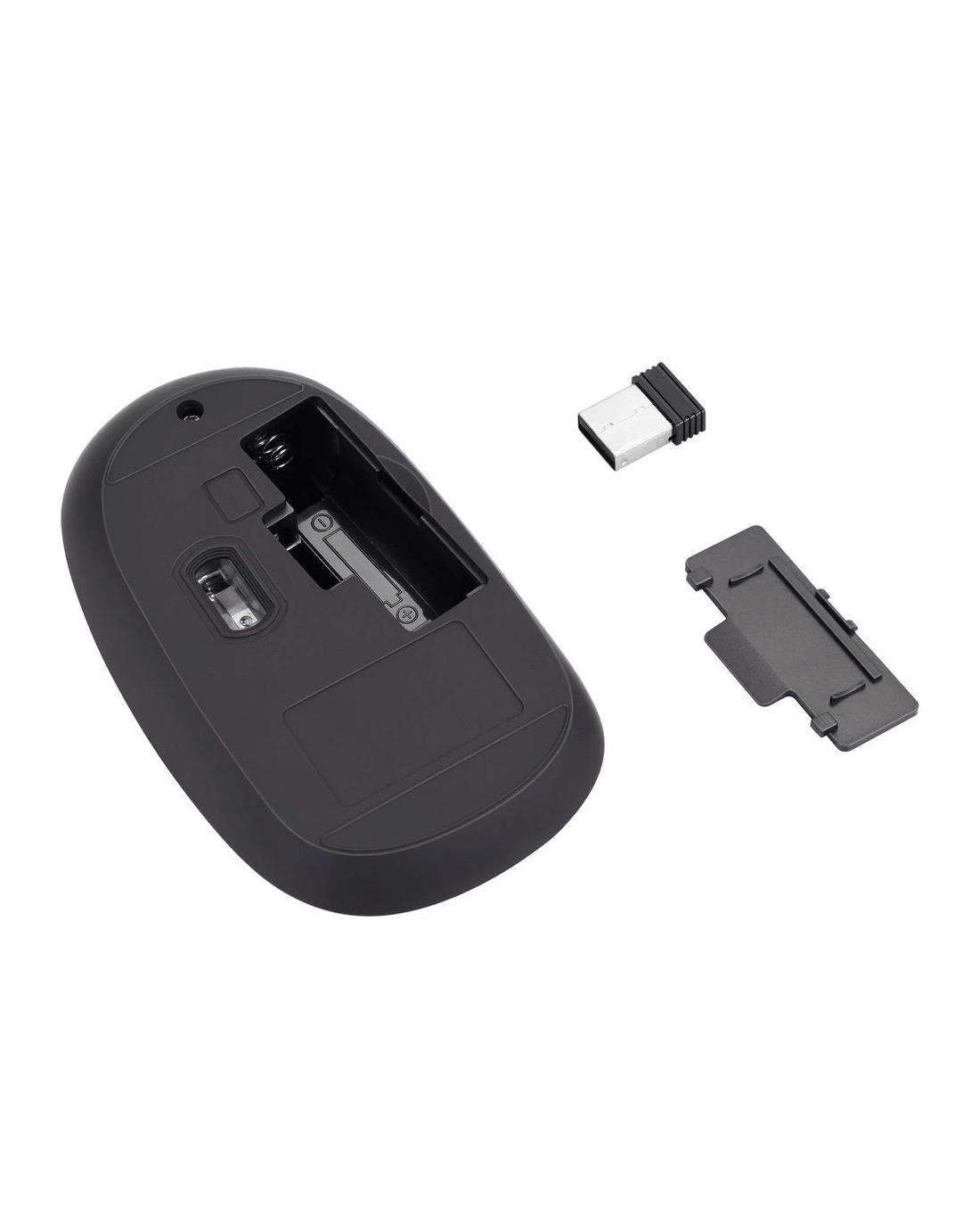 - The small 2.4Ghz USB-A dongle stores inside the mouse for convenient transportation.