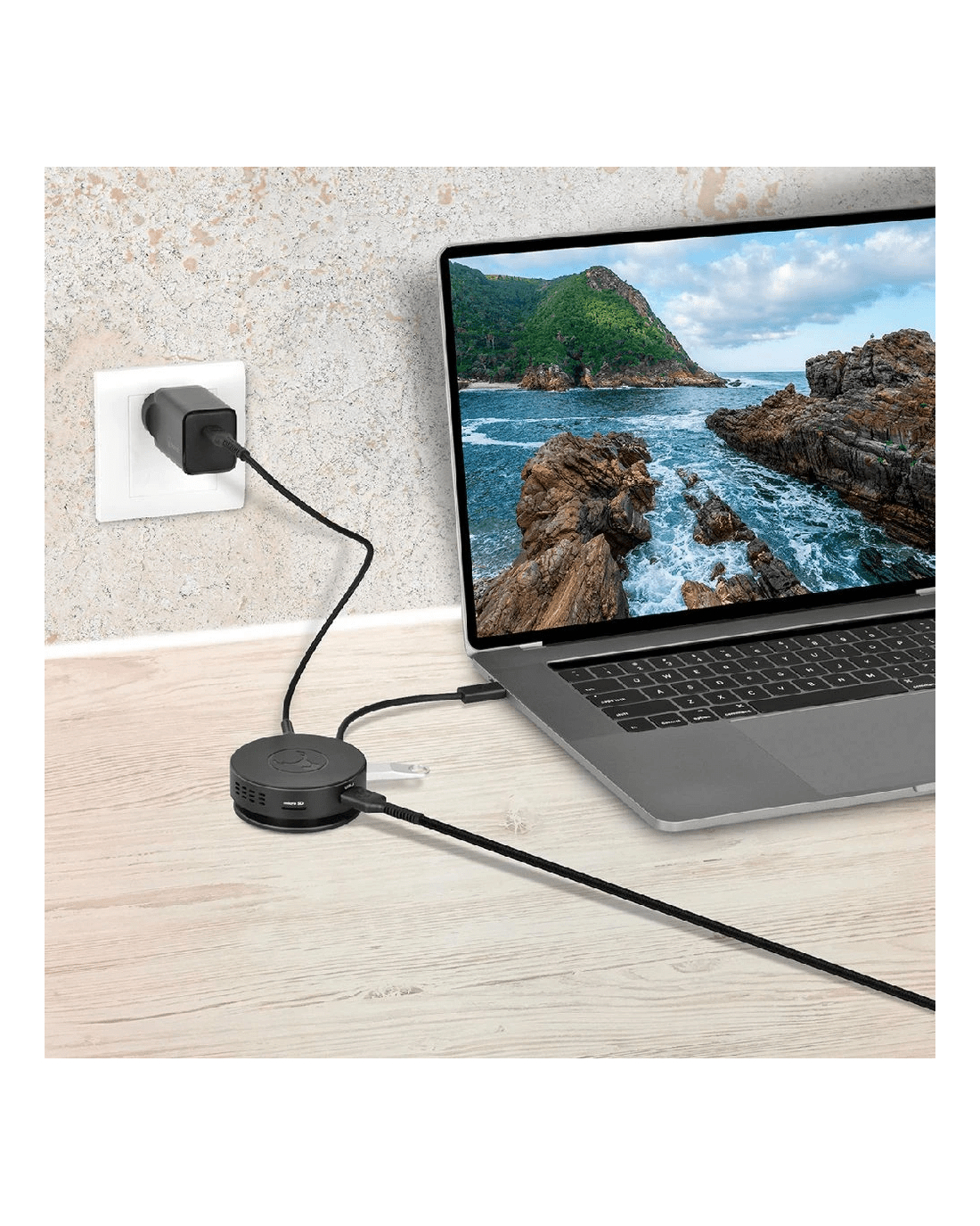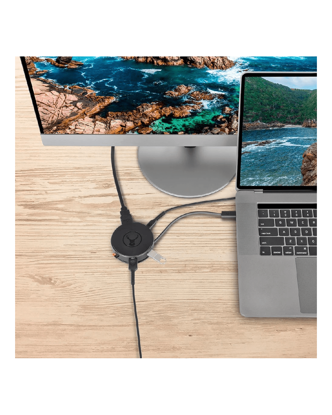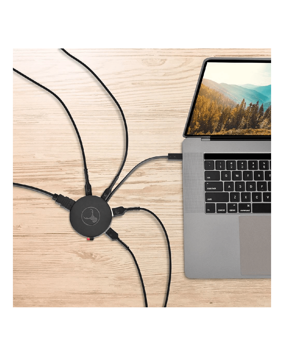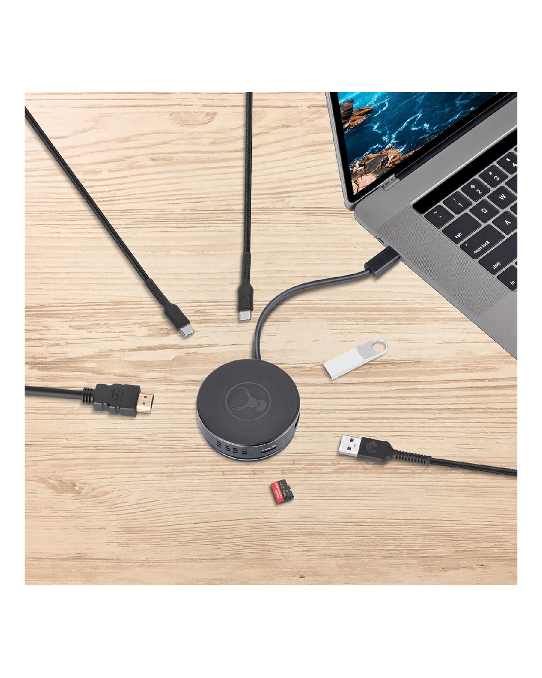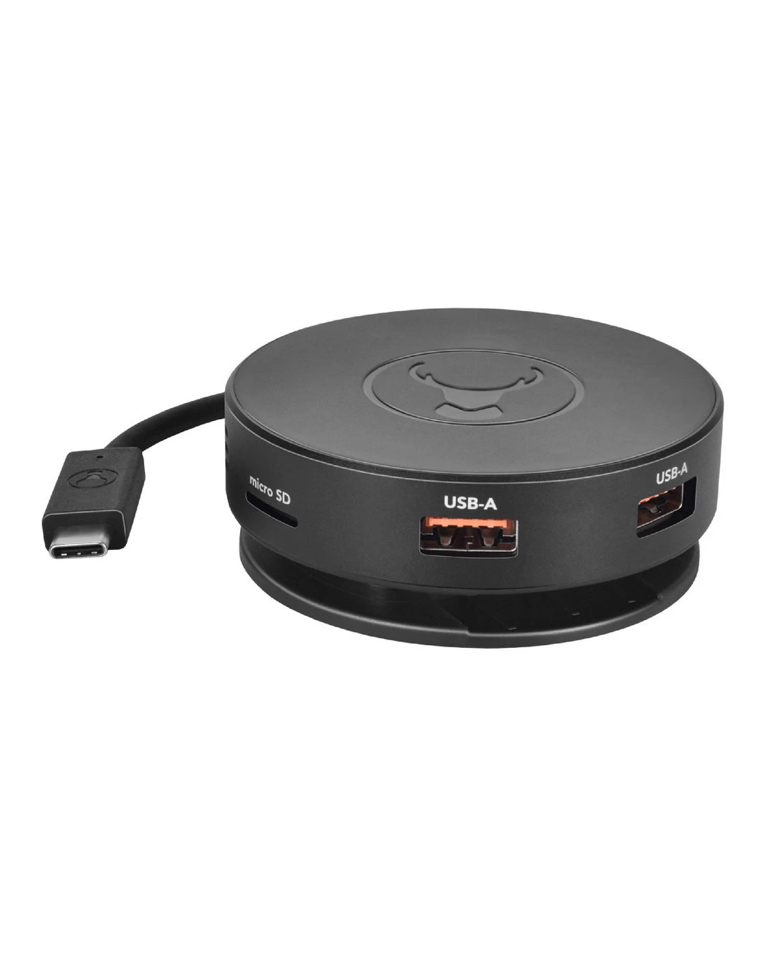 This Bonelk USB-C 360 6-in-1 Travel Hub offers a versatile, compact solution for expanding device connectivity. From a single USB-C connection, you can add six accessories or connected devices. The unique, round space ensures the connections are easily accessible without cluttering, and the cable wraps around for compact portability.