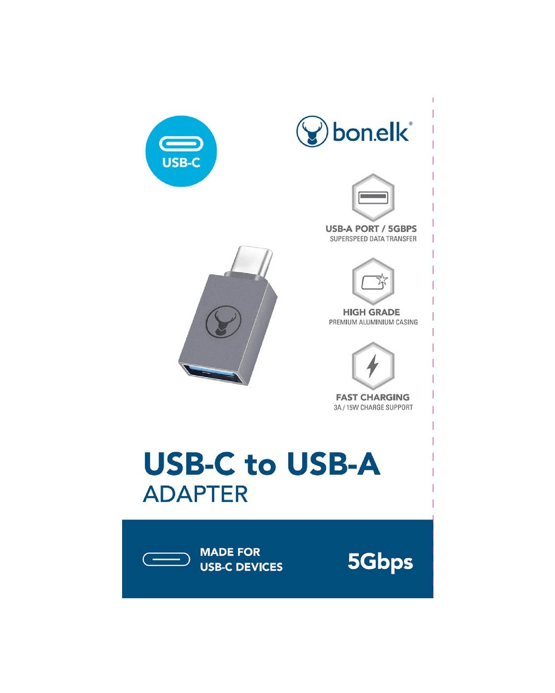 This Bonelk Adapter provides you an easy way to plug a USB-A device or cable into a USB-C port. It comes in a compact size, making it easy to incorporate within your home or work office setup.
