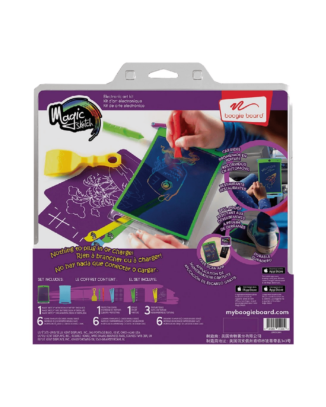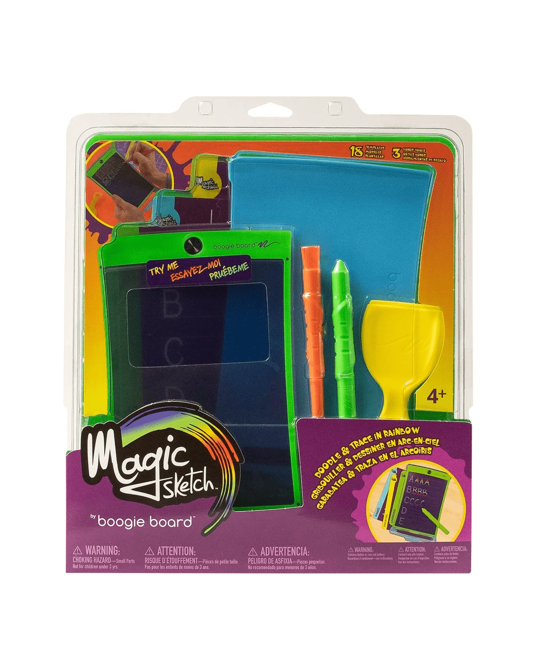 This Boogie Board Magic Sketch LCD eWriter is perfect for use by early learners so they can practise writing and drawing without the need for paper. The LCD screen provides a comfortable writing experience and there's a button on the top where you can erase your whole screen whenever necessary. There are 4 different stylus shapes included so you can create with different colours and line widths, plus the screen is transparent so you can slide the included templates underneath and use them to help guide your drawing.