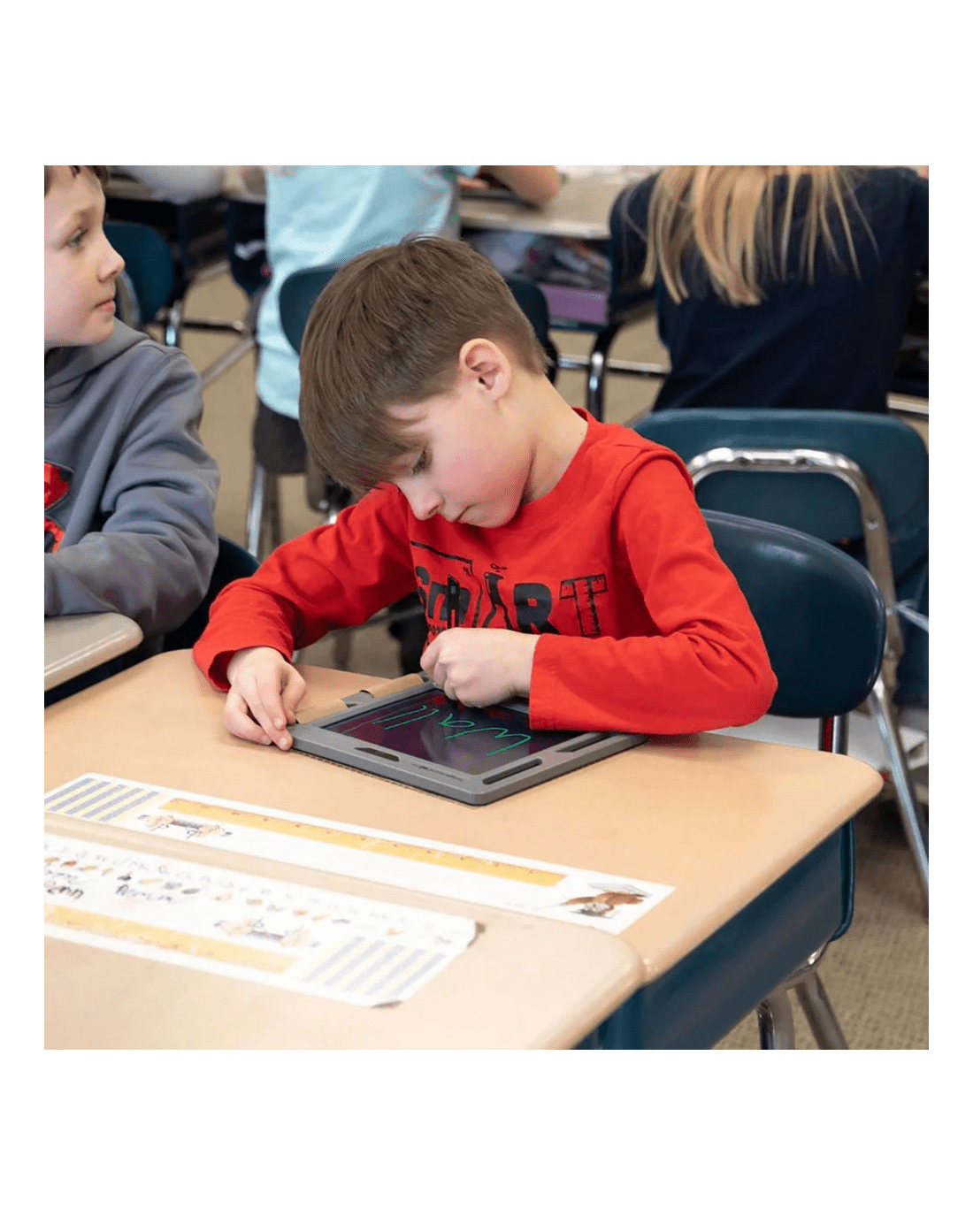 - The Boogie Board app can be accessed on your smartphone so you can scan, share, and edit your writing and sketches from your board.