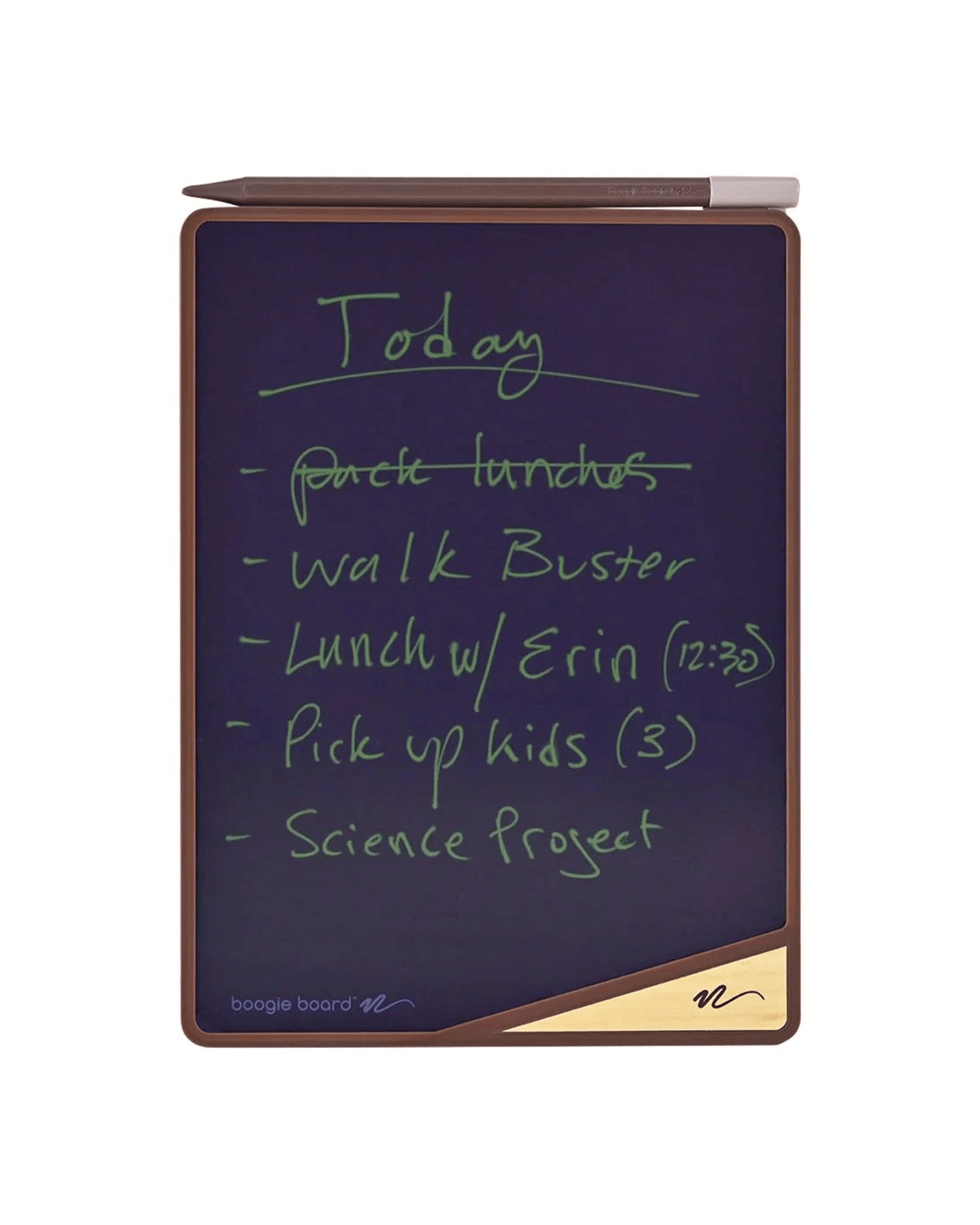 The Boogie Board VersaBoard is perfect for sketching or taking notes on the go. It has a pressure-sensitive LCD screen that provides a natural sense like writing on paper. You can erase it by tapping the corner with the magnetic stylus to easily start over. An integrated magnet on the tablet makes it easy to stick to a fridge