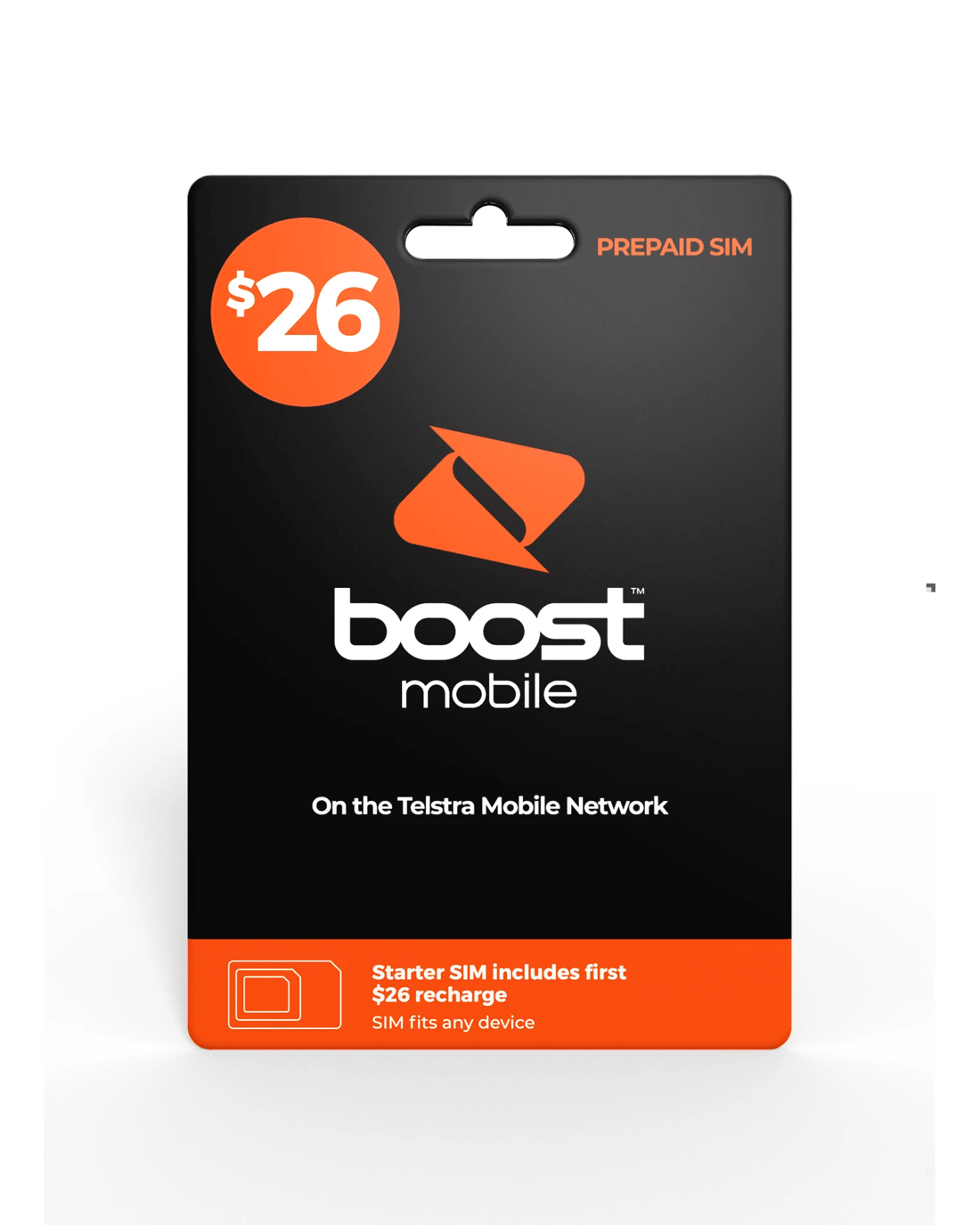 The Boost Telstra $26 Prepaid SIM allows activation of a prepaid plan and provides access to the Boost network, which leverages Telstra's extensive network coverage.