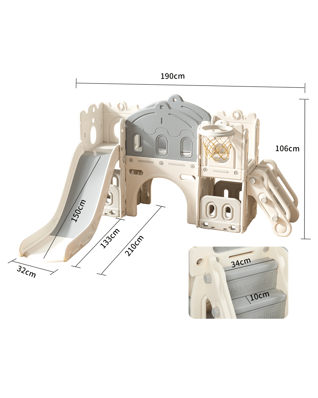 • Child Safe 6-in-1 Play Centre: Combines slide, basketball, and more for full-body activity.