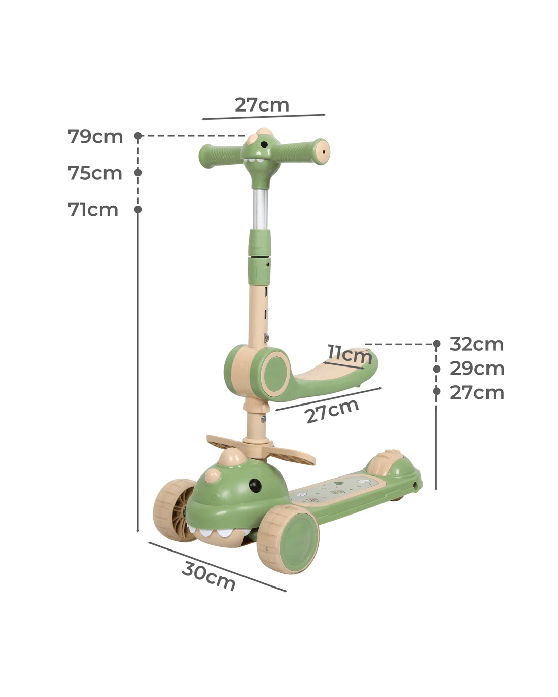 - Flip-able seat with 3-level adjustable height