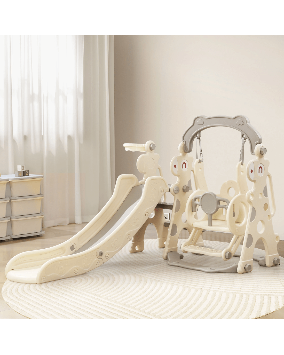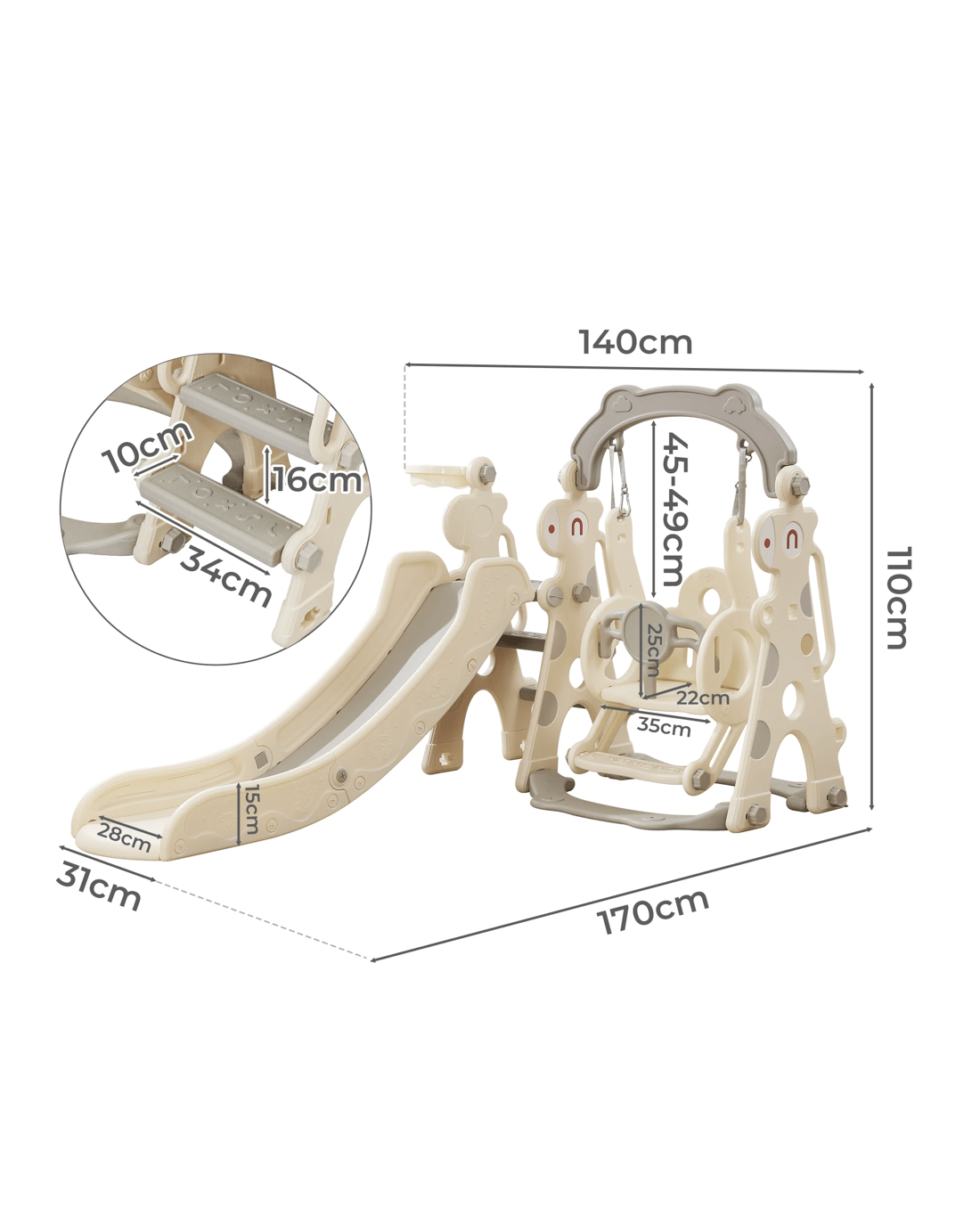 The Bopeep kids slide swing set is the perfect indoor and outdoor play centre for your little ones. This 4-in-1 kids slide swing includes a slide, a swing, and a basketball hoop, keeping your child active and entertained.