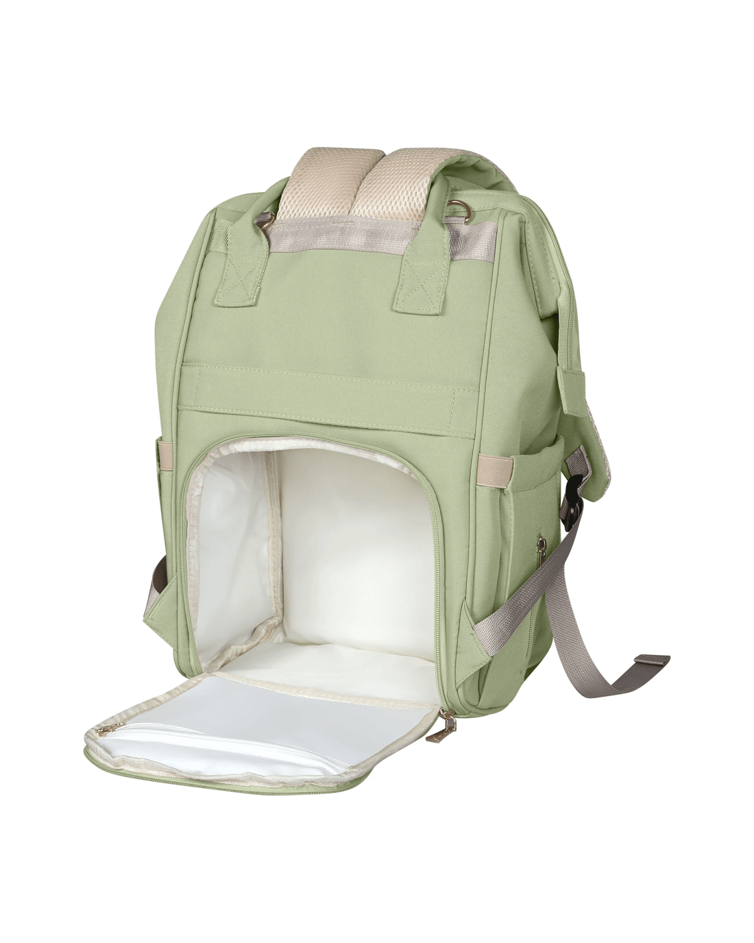 For added convenience, this Bopeep nappy bag backpack includes hands-free mobility with straps that easily attach to your luggage handle or stroller, making it the perfect travel nappy bag. Plus, it includes a bonus diaper changing pad, offering a portable and hygienic surface for diaper changes wherever you are.