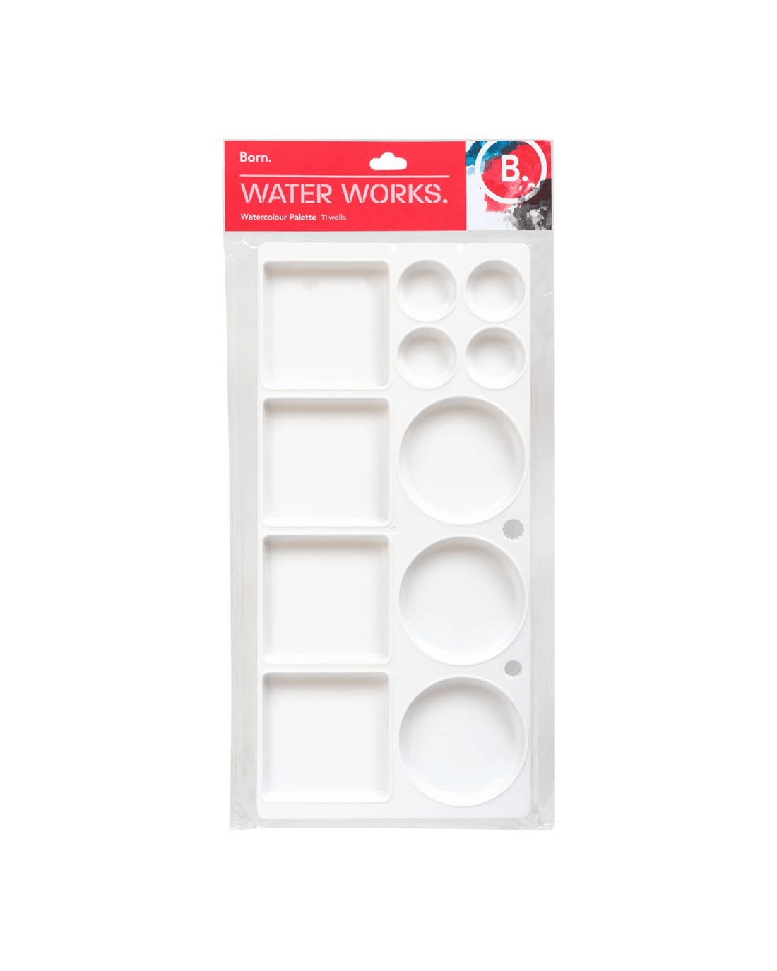 This Born 11 Well Watercolour Palette is a great addition to any artist's studio or workspace. It has 11 wells, allowing you to mix colours or just keep your favourite ones handy while you paint. It is ideal for watercolour paints and is comfortable to hold while you work.