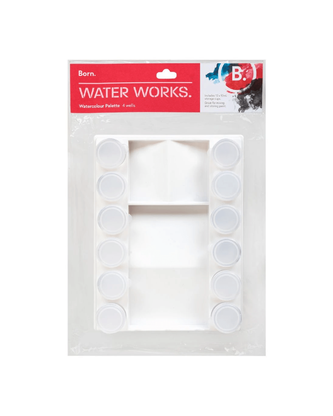 This Born 4 Well Palette and its Storage Cups can be used in your art studio or tool kit. The palette has 4 wells for mixing new colours and keeping them handy while you create art. There are 12 storage cups where you can store your newly mixed paints for future use, and they can be washed and reused over and over again.
