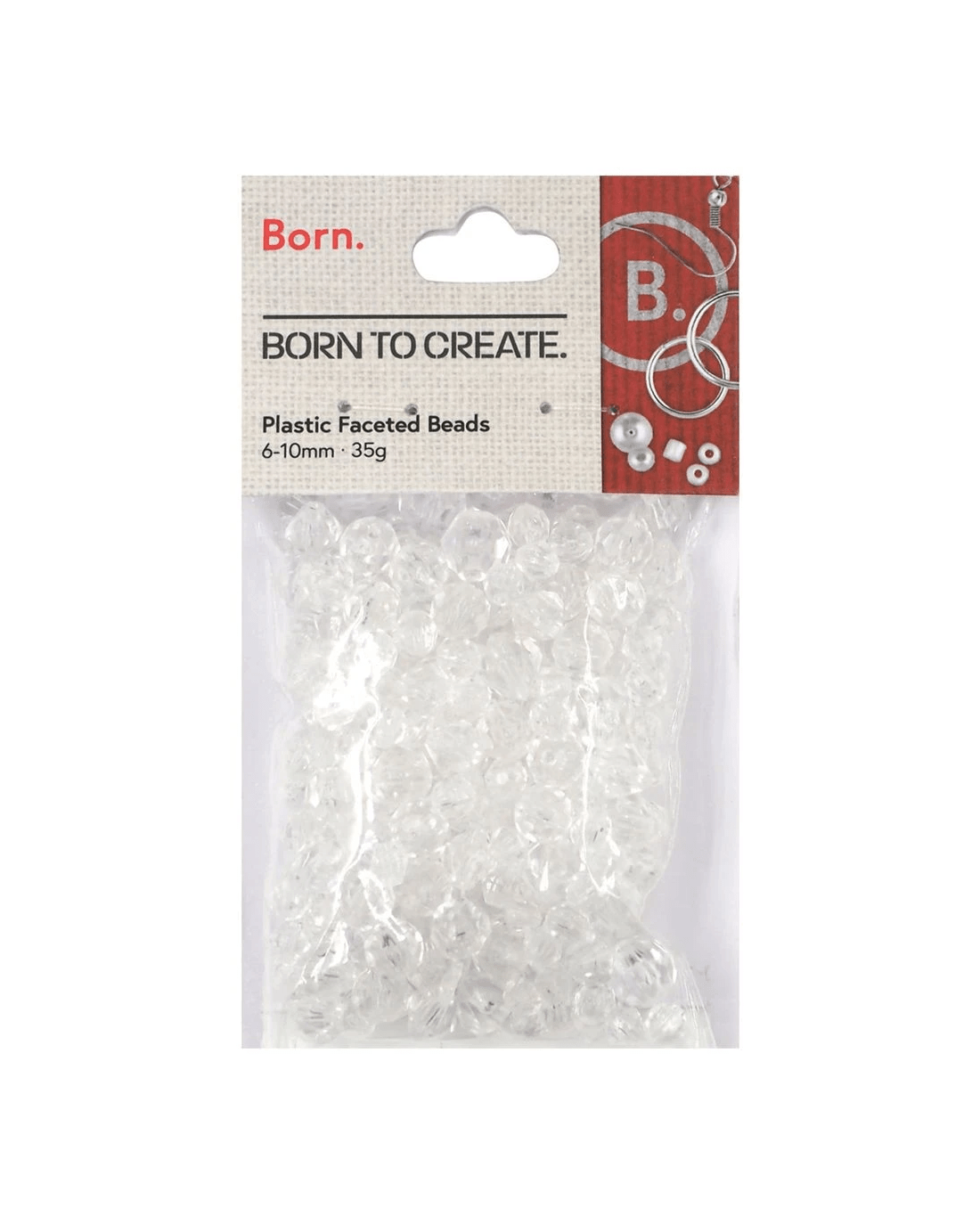 Sold by OfficeworksBorn 6-10mm Plastic Faceted Beads Clear 35g