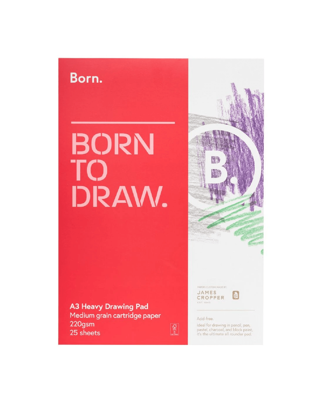 This Born Drawing Pad was designed and milled in collaboration with James Cropper paper mill to deliver uncompromised quality and feel. It's ideal for artists and illustrators thanks to the premium paper that allows you to use a range of different drawing utensils on it.